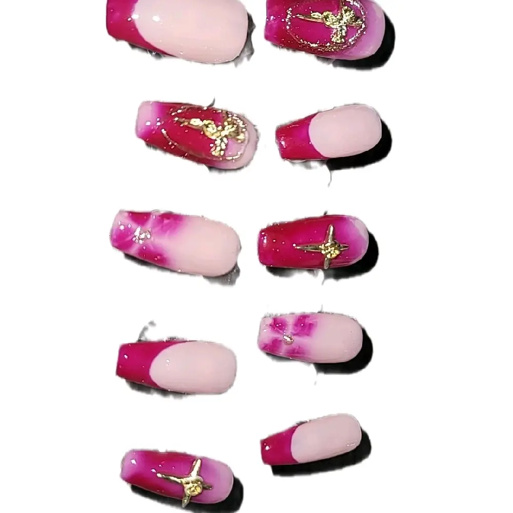🌟 With these nails, you'll always be the center of attention. The fuchsia pink and golden glow design ensures you make a statement. Try them today and elevate your nail collection.