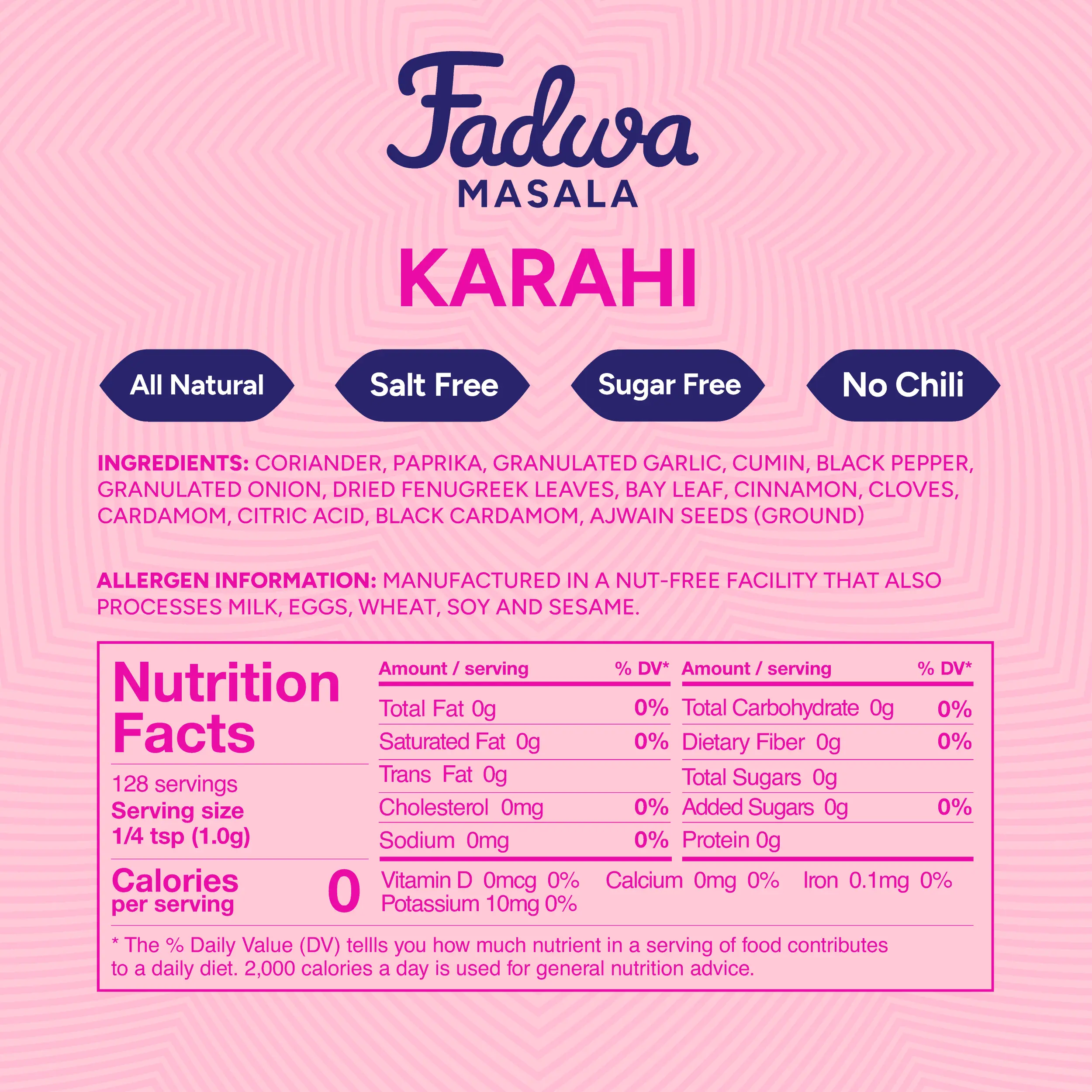 Made with clean, punchy spices like coriander, garlic, black pepper, cumin, and fenugreek leaves, this savory blend delivers sharp aroma, deep warmth, and that unmistakable karahi intensity.