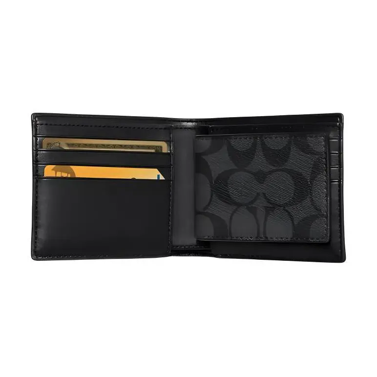 COACH 3-in-1 Wallet 11 – Classic Monogram Bifold Mini Wallet (Men’s, Black-Grey)