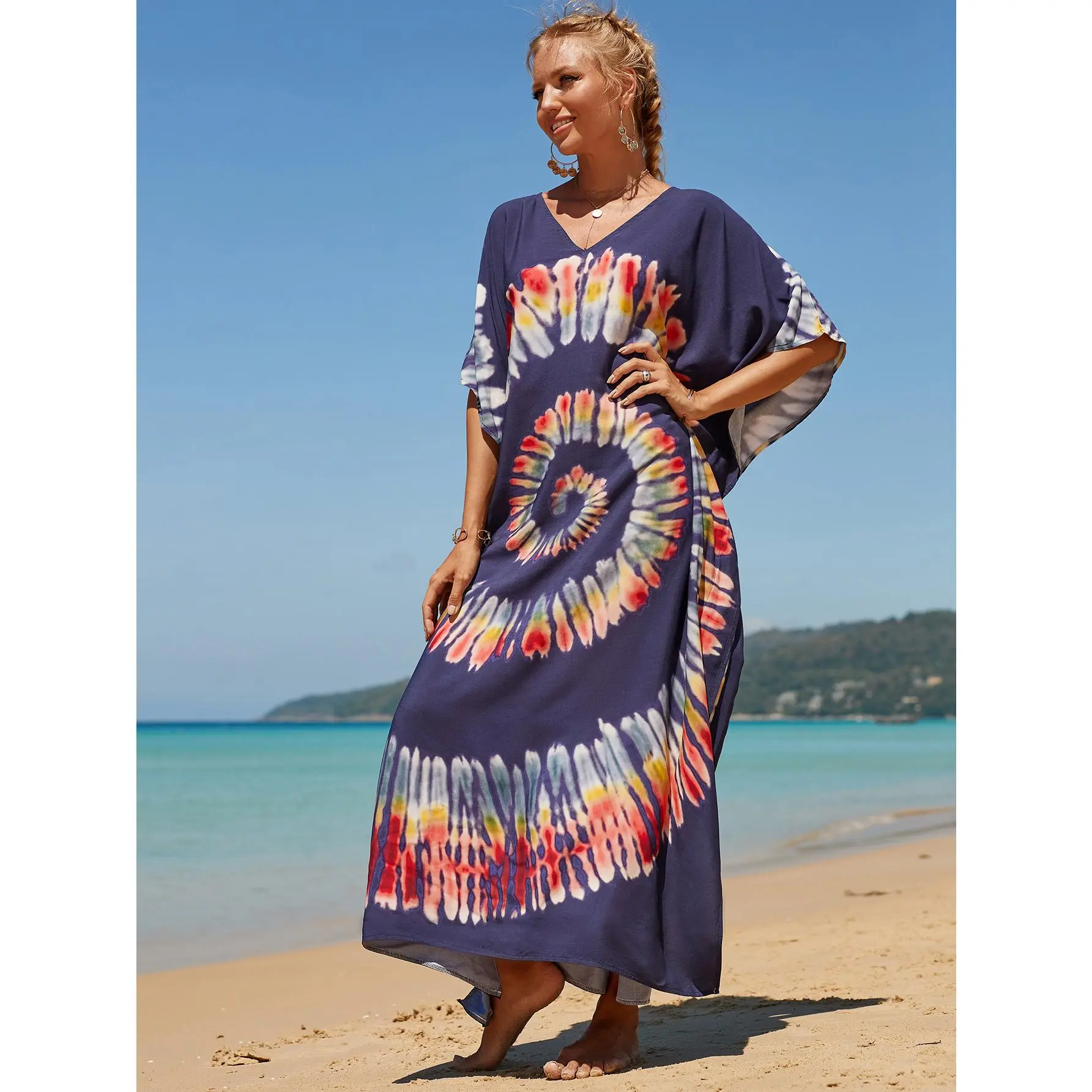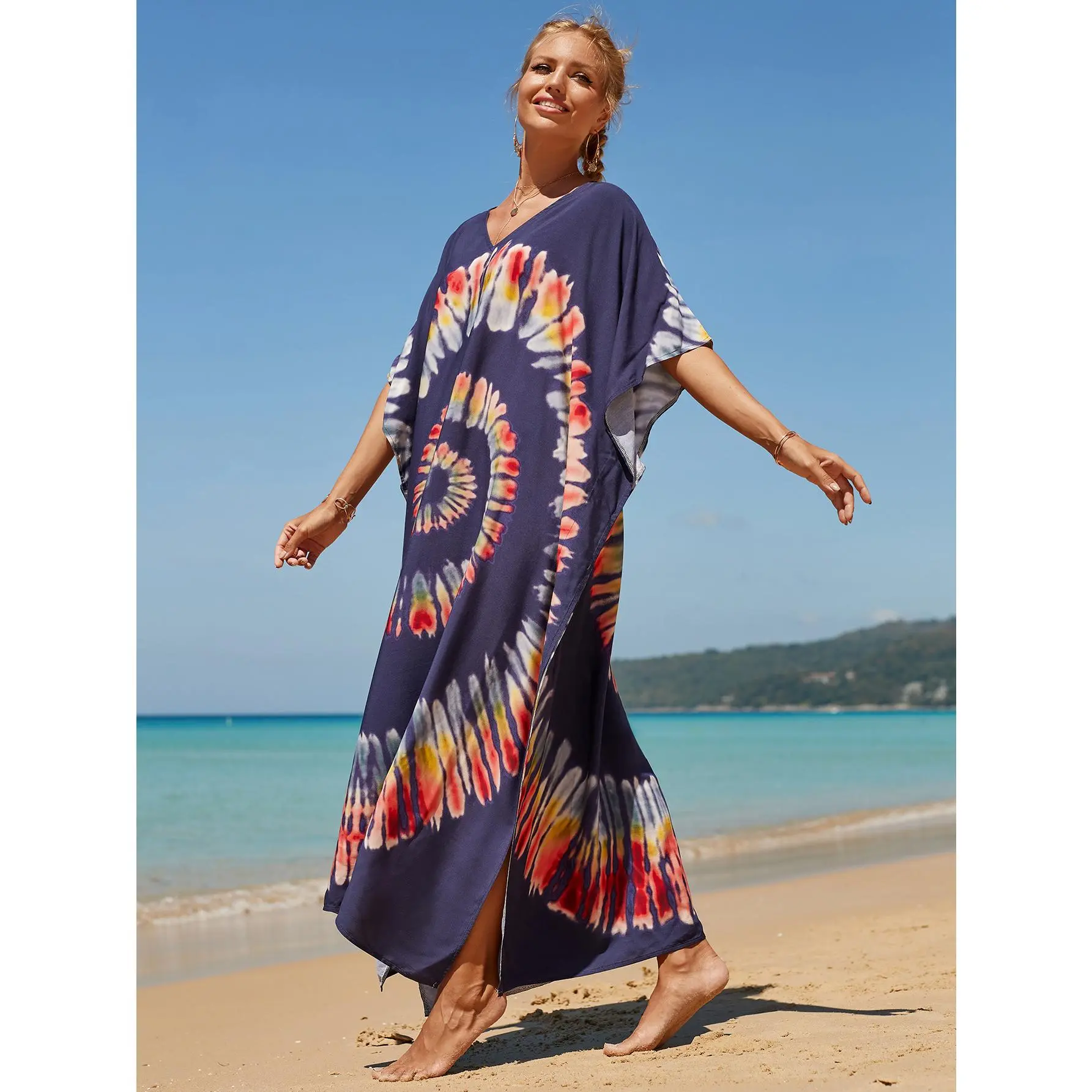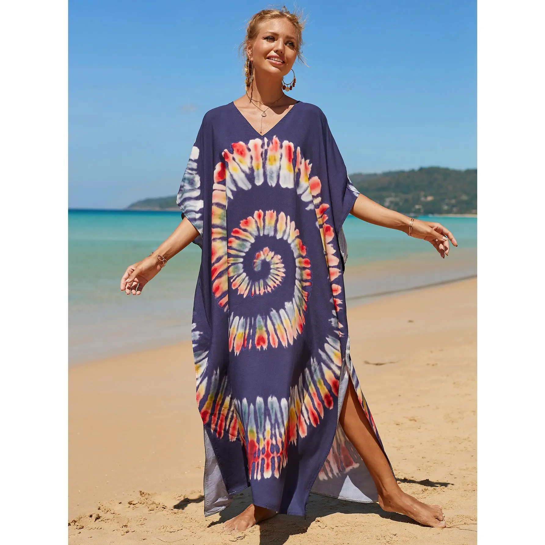 ·FLOWING KAFTAN DESIGN: Featuring an elegant Kaftan-style design, it exudes charm whether you're at the beach or on vacation. Its maximum length provides ample coverage and protection while maintaining a light and airy feel.