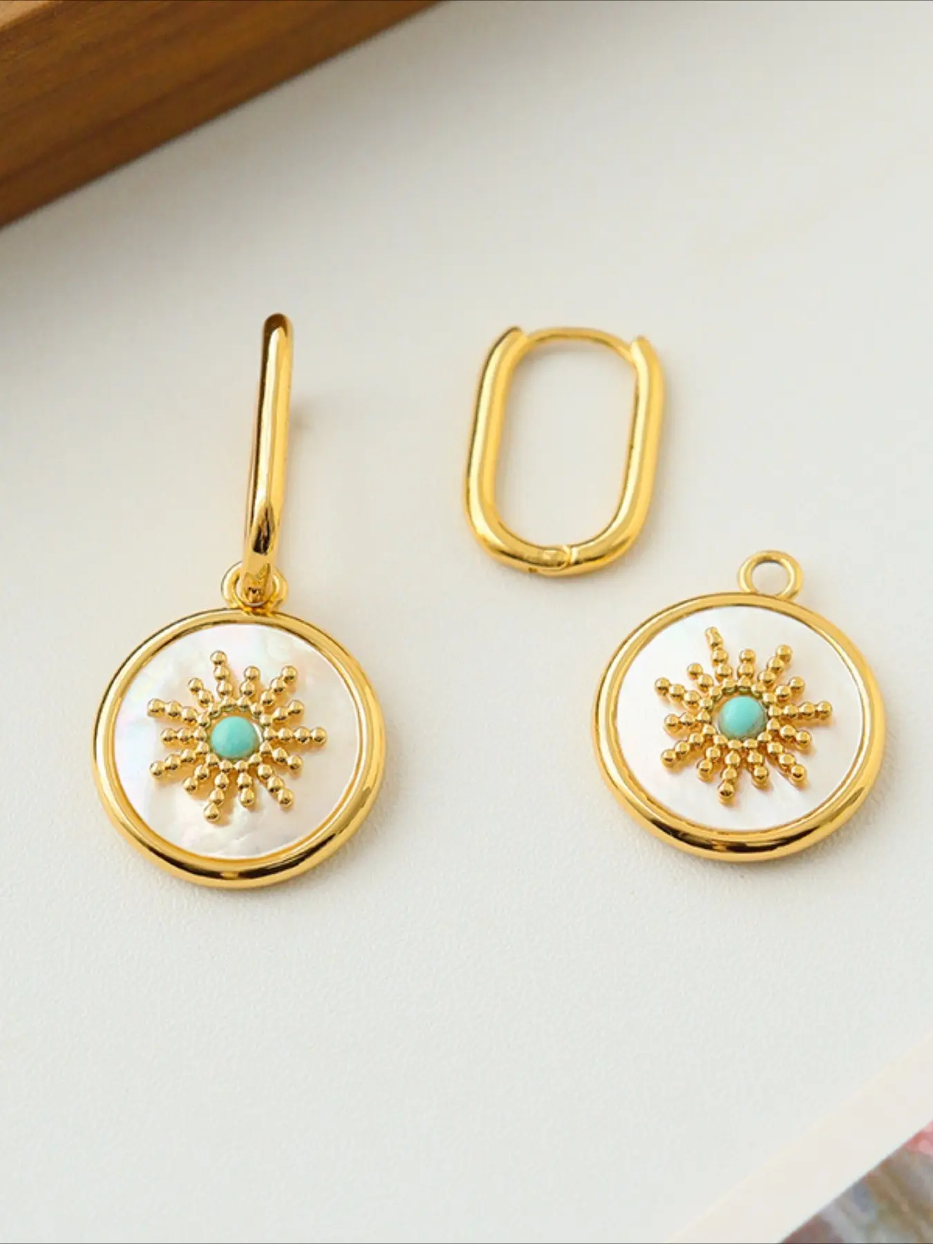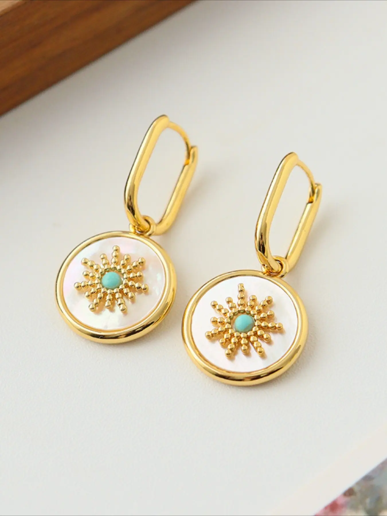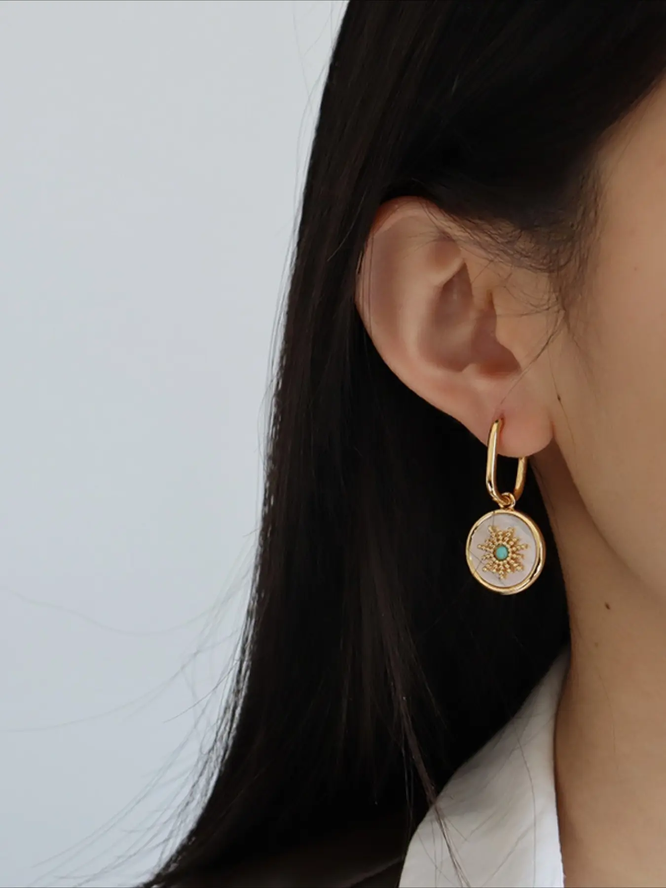 Elegant European American Minimalist Fashion Sun Shell Natural Stone Earrings Light Luxury Retro Exquisite Versatile Jewelry