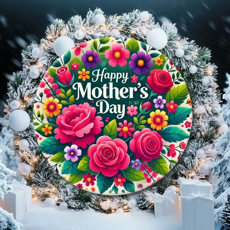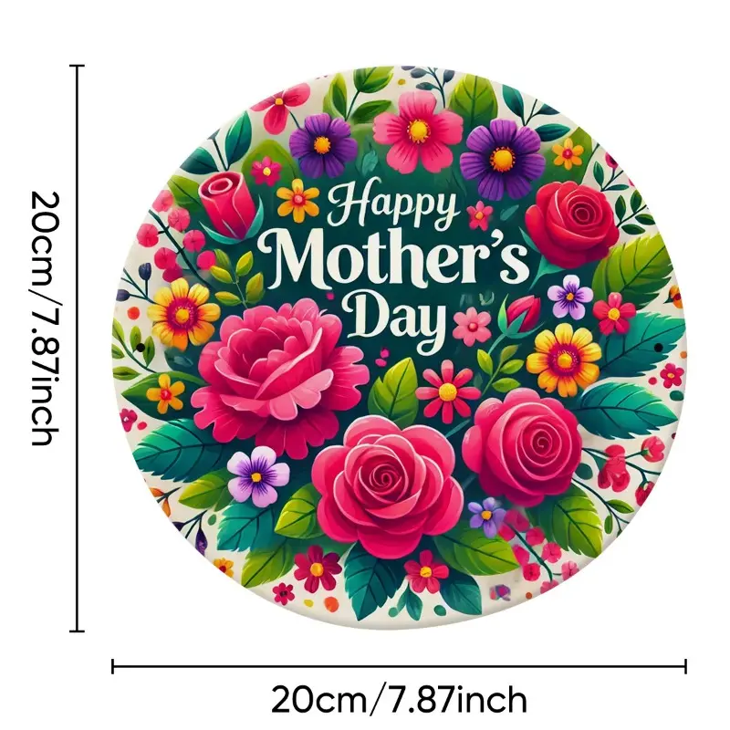 Vintage Mother's Day Wall Hanging - Round Floral Wreath Metal Sign with "Happy Mother's Day" Text, Pink Roses & Purple Daisies - Durable Iron Decor Suitable for Farmhouse, Porch, Bedroom - Perfect Gift for Mom, Year-Round Decorative