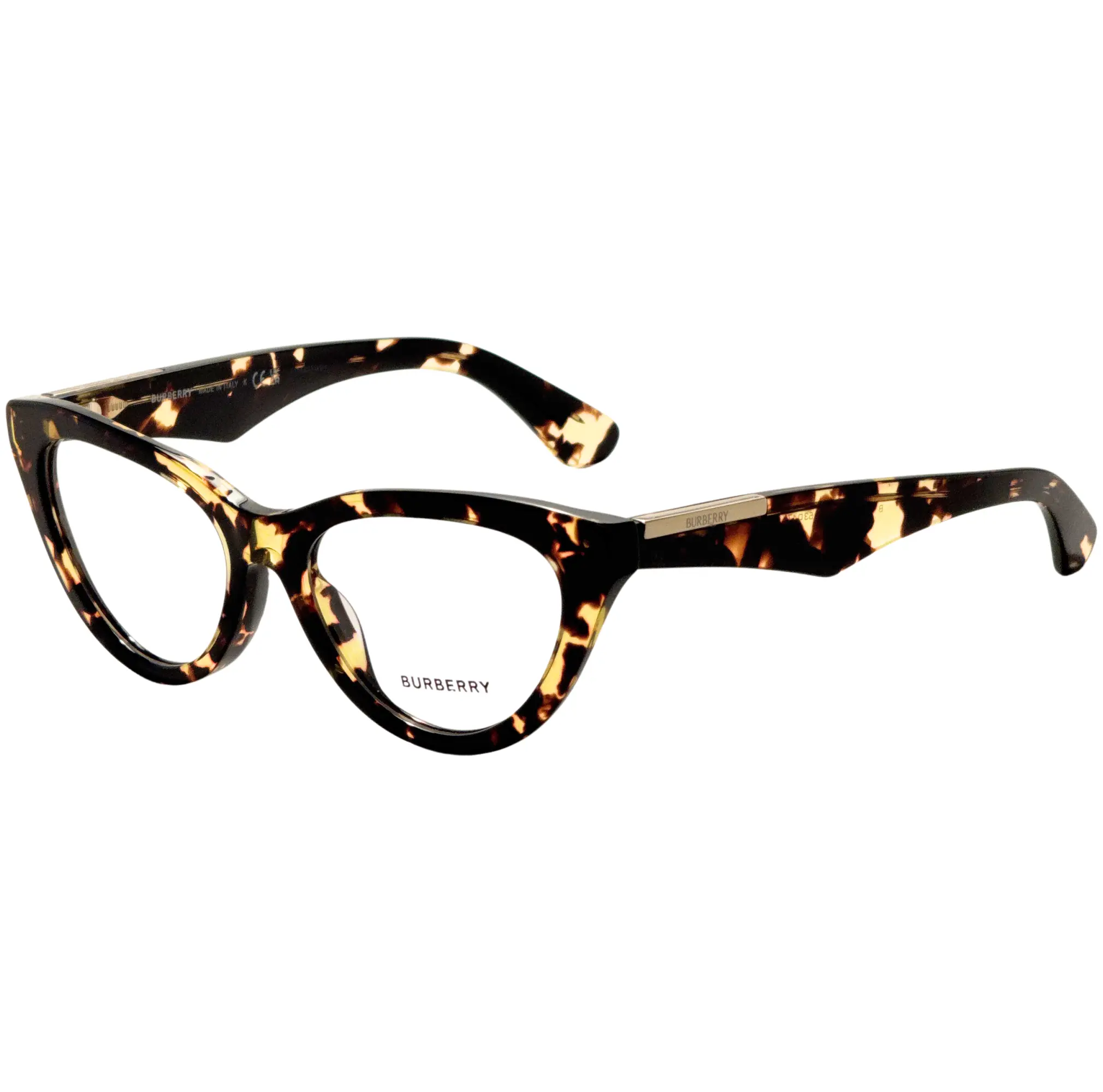 Burberry Women's 53 mm Eyeglasses - Dimensions: 53 mm x 17 mm x 145 mm - Frame Color: Yellow Havana - Frame Shape: Cat-Eye - Frame Material: Acetate - Demo Lens