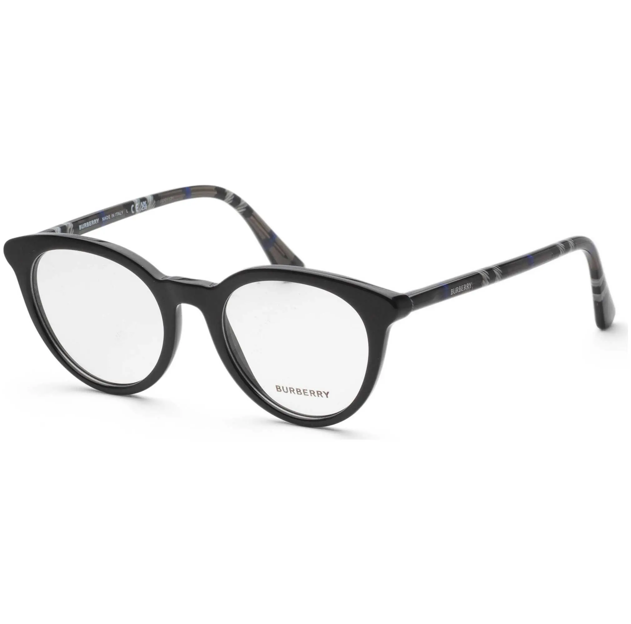 Burberry Women's 50 mm Eyeglasses - Dimensions: 50 mm x 20 mm x 140 mm - Frame Color: Black - Frame Shape: Round - Frame Material: Acetate - Demo Lens