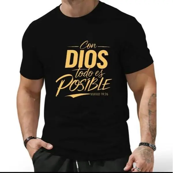 5. Christian Faith T-Shirt , Bold "Con Dios Todo Es Posible Matthew 19:26" Quote Graphic Design , Perfect for Believers and Christian Community , Unisex Tee , Religious Gift Shirt