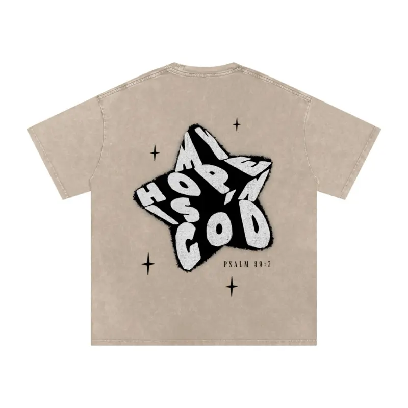 My Hope Is In God Graphic Tee - Snow Washed Oversized 100% Cotton Casual Fit 250gsm Fabric for Faith Fashion