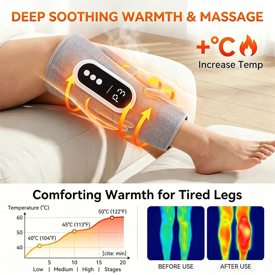 Do not use if you have deep vein thrombosis, heart disease, or any other serious health condition without consulting a doctor. Keep the massager away from water and do not use it while sleeping or taking a bath. Always follow the instructions provided with the massager and do not exceed the recommended usage time to prevent overheating.