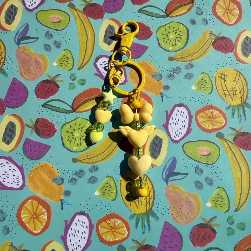Yellow Keychain with Heart and Bow Design, Perfect for Keychains and Accessories