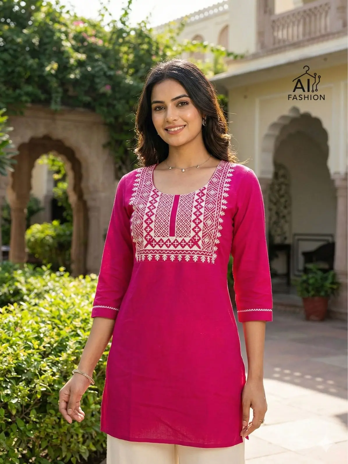 ✨ Elevate your style with this Pinterest-inspired short kurti top. Crafted from heavy rayon, it offers a soft, breathable feel, ideal for all seasons. The thread embroidery adds a classy touch, perfect for casual outings, office wear, or festive occasions. Pair it with jeans, pants, or palazzos for a chic, modern ethnic vibe.