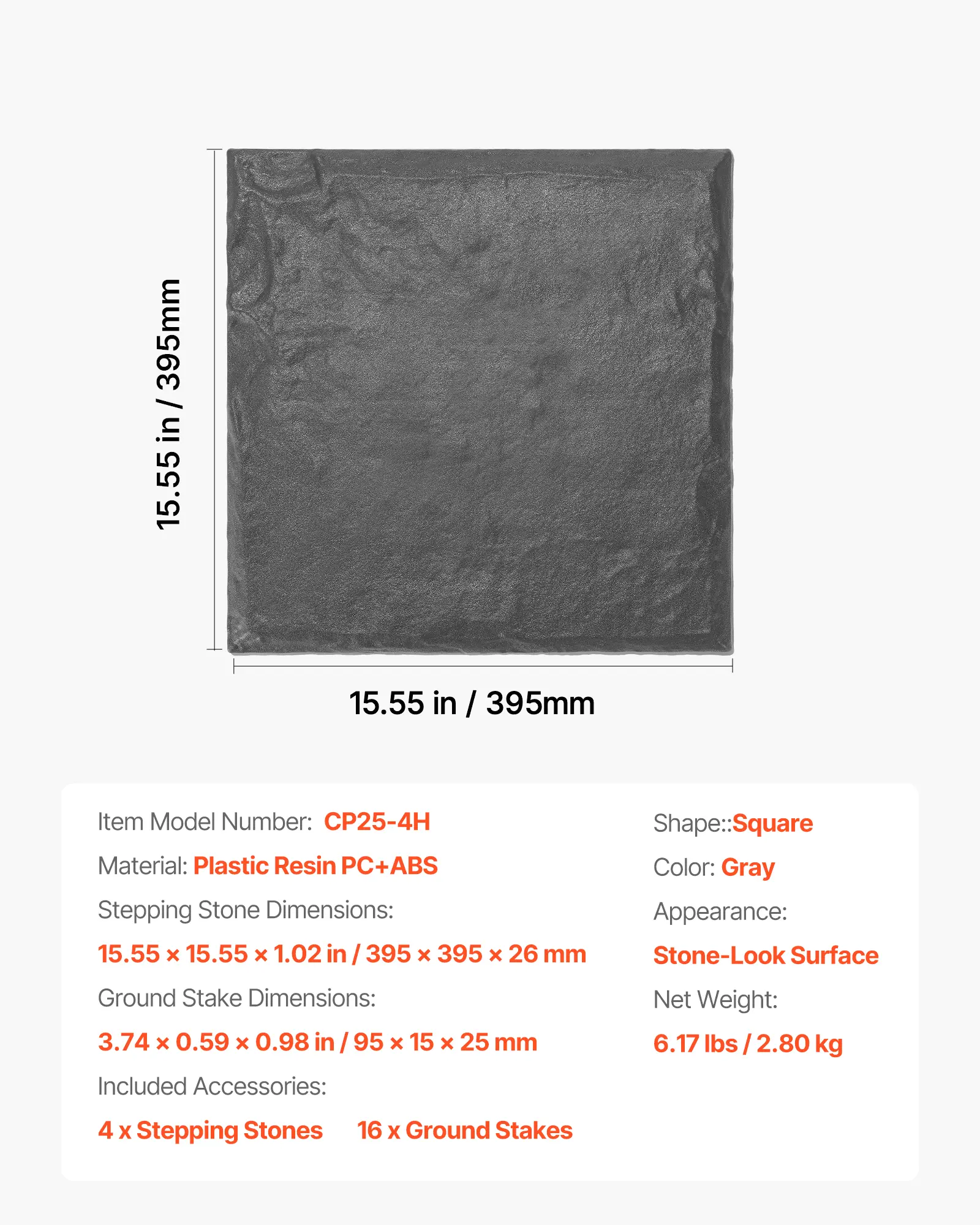 Secure & Stable: Each pathway stepping stone includes four 3.74-inch (95 mm) ground stakes and a reinforced ribbed base for enhanced stability. They stay firmly in place even in heavy rain or with frequent foot traffic—ideal for homes with kids and pets.