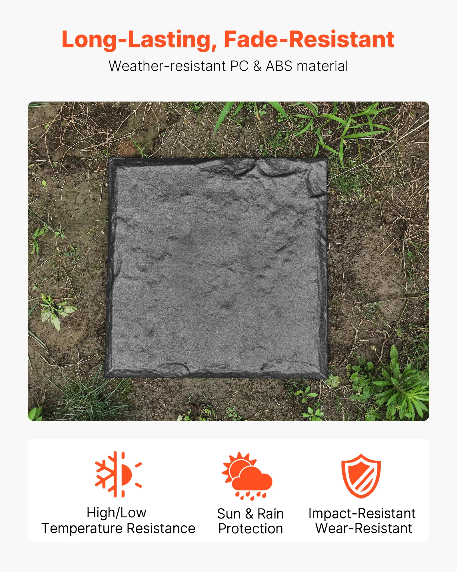 Weather-Resistant & Built to Last: Crafted from durable PC+ABS resin, these stepping stones are heat-resistant, crack-proof in freezing temps, and impact-resistant. Designed for year-round outdoor use, they won’t fade, warp, or lose their shape—rain or shine.