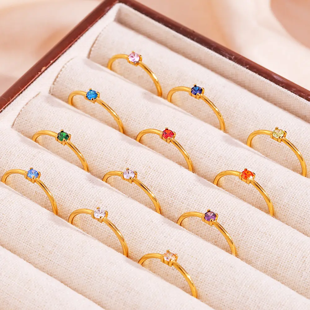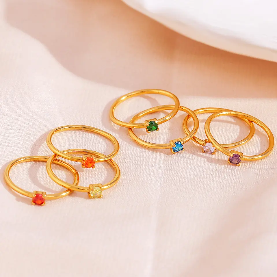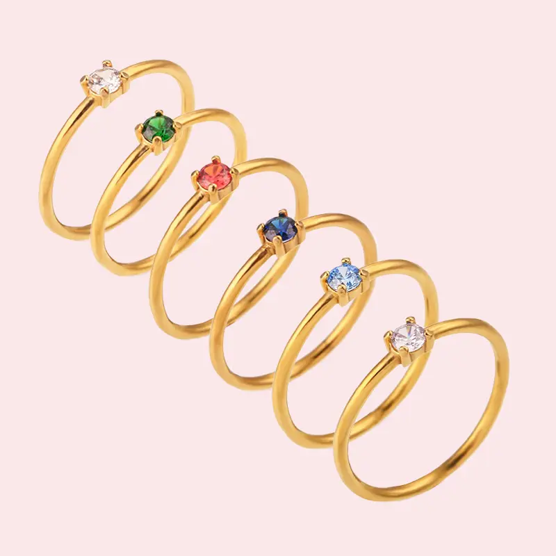 ✨ Discover the Minimalist Birthstone Ring! This ring features a round zircon and your chosen birthstone, perfect for personalized fashion. Its dainty design allows for colorful stacking or pairing with other rings. Ideal for any fashion-forward woman, this ring adds a unique touch to your collection. Size 6-9, it's a versatile accessory for everyday wear or special occasions.