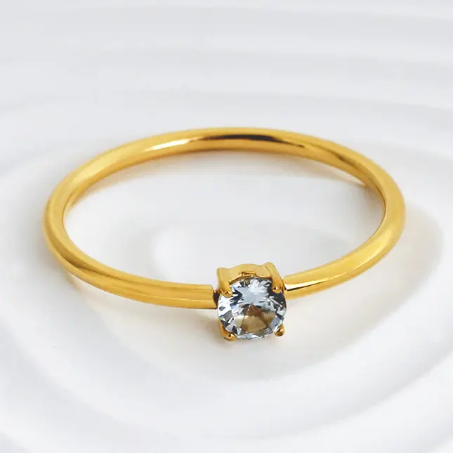 Birthstone Rings for Women Non Tarnish Golden Stackable Rings Dainty Round CZ Pinky Plain Band Ring Personalized Jewelry Gift for Birthday Size 6-9