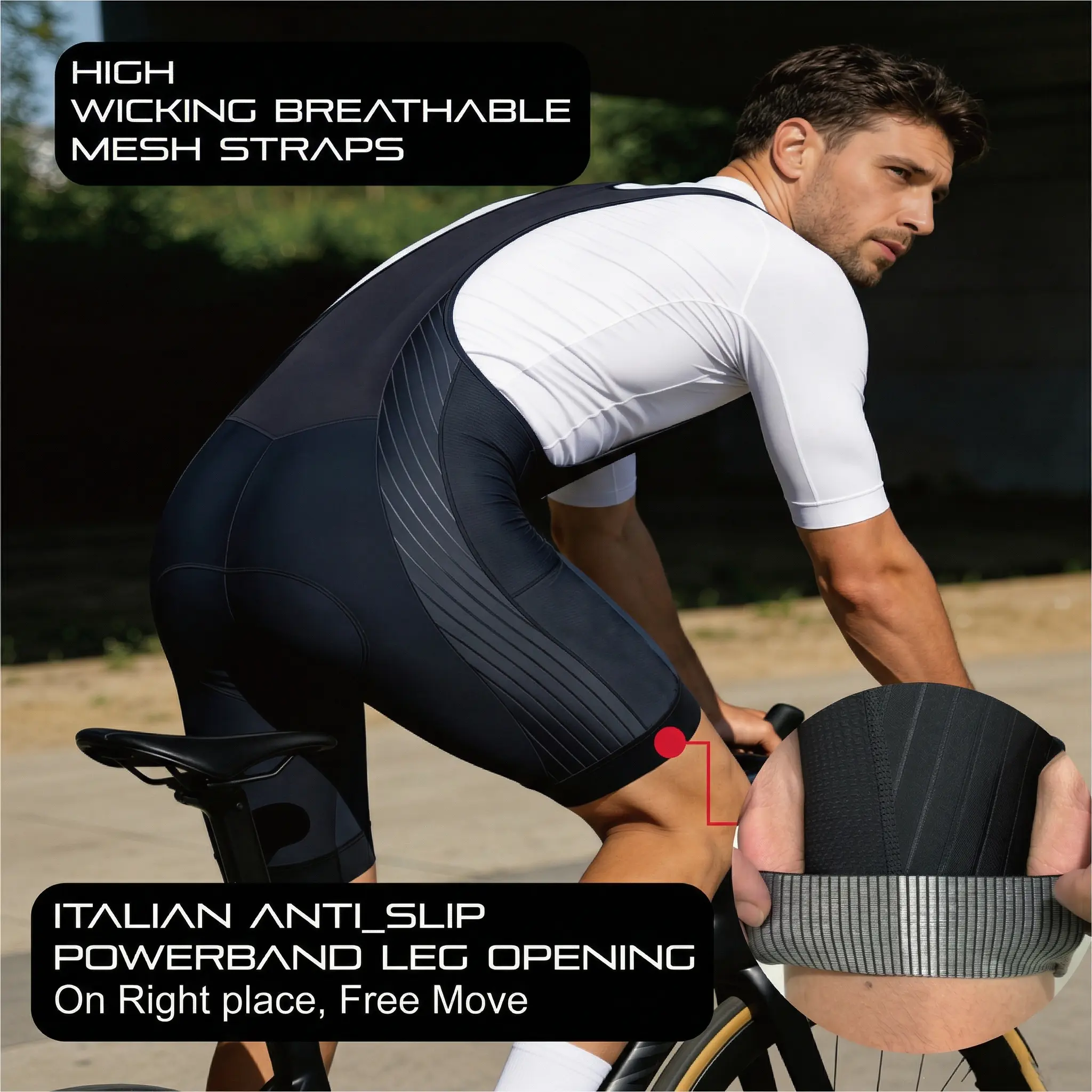 * Italian Power Band Leg Grippers:No silicone, no chafing or deep marks, secure compression that stays in place, moves with your legs for a chafe-free ride.