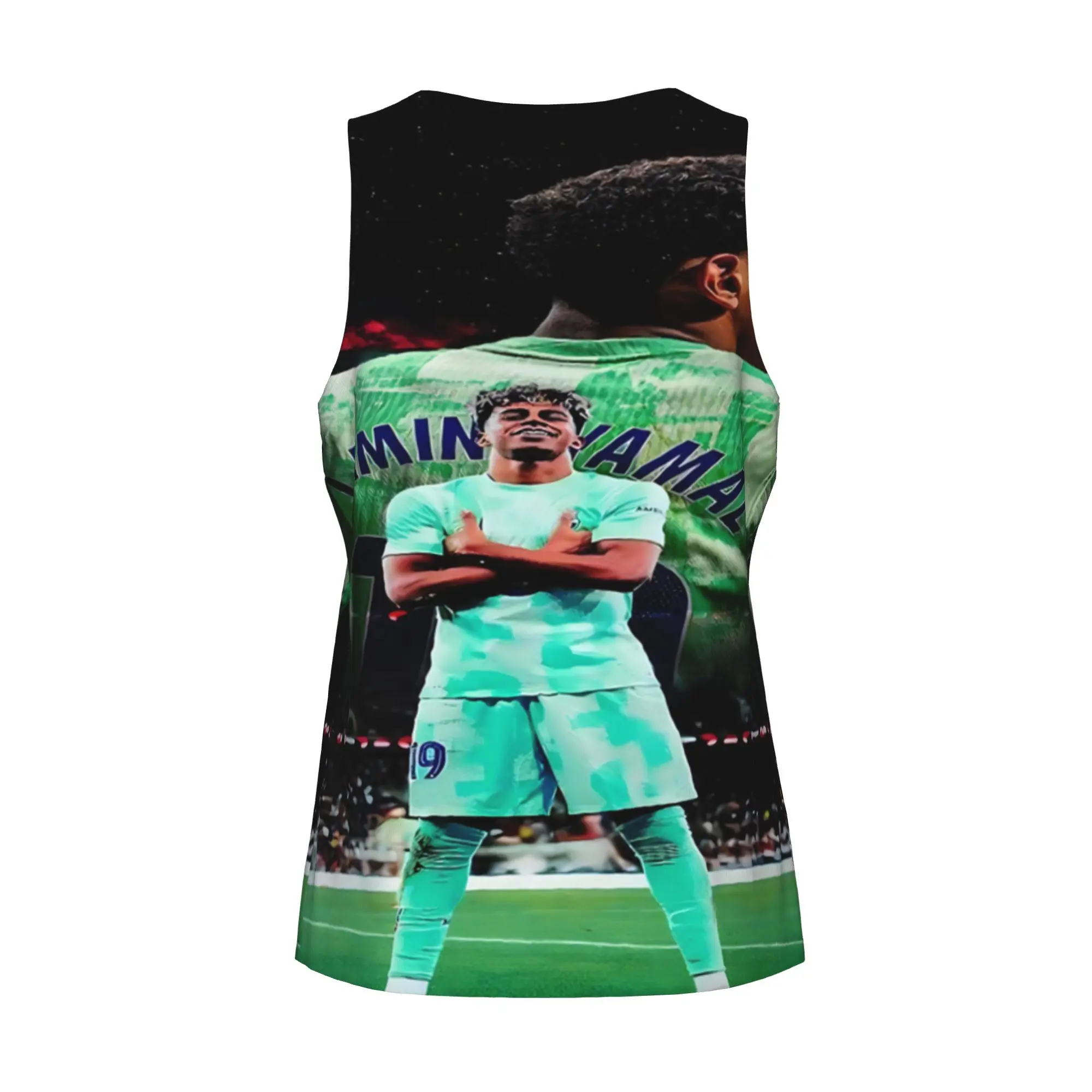 Stand Out With Yamal! Barcelona Mint Green Graphic Muscle Tank Barcelona Lamine Yamal #19 Print Muscle Shirt Summer Vest for Soccer Lovers