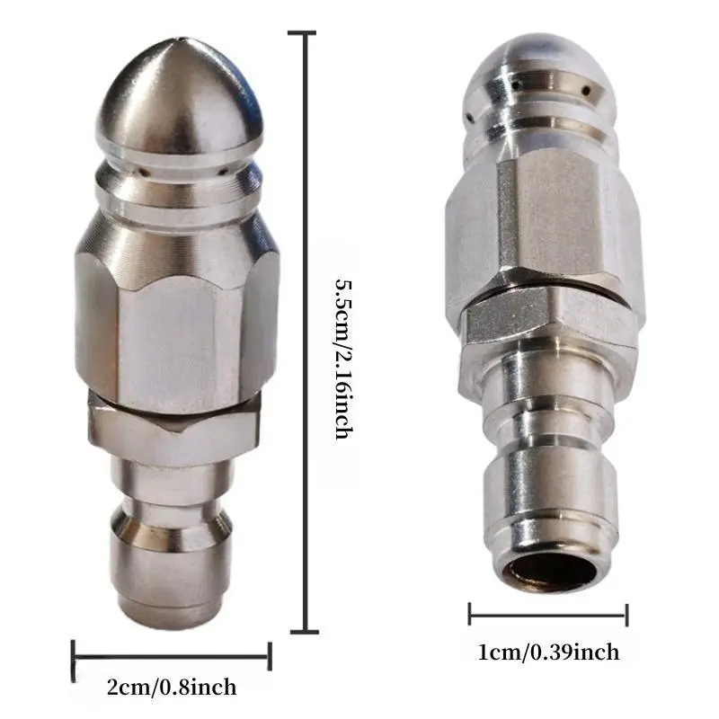Crafted from durable, corrosion-resistant stainless steel, this nozzle is built to last through years of heavy use. It resists rust, wear, and damage from harsh chemicals, making it perfect for both indoor and outdoor drain cleaning applications.