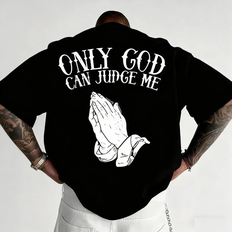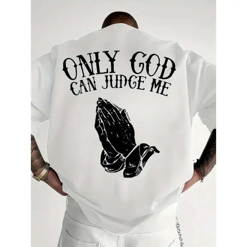 "Faith-Based Streetwear T-Shirt – 'Only God Can Judge Me’, Oversized, Black & White, Trending"
