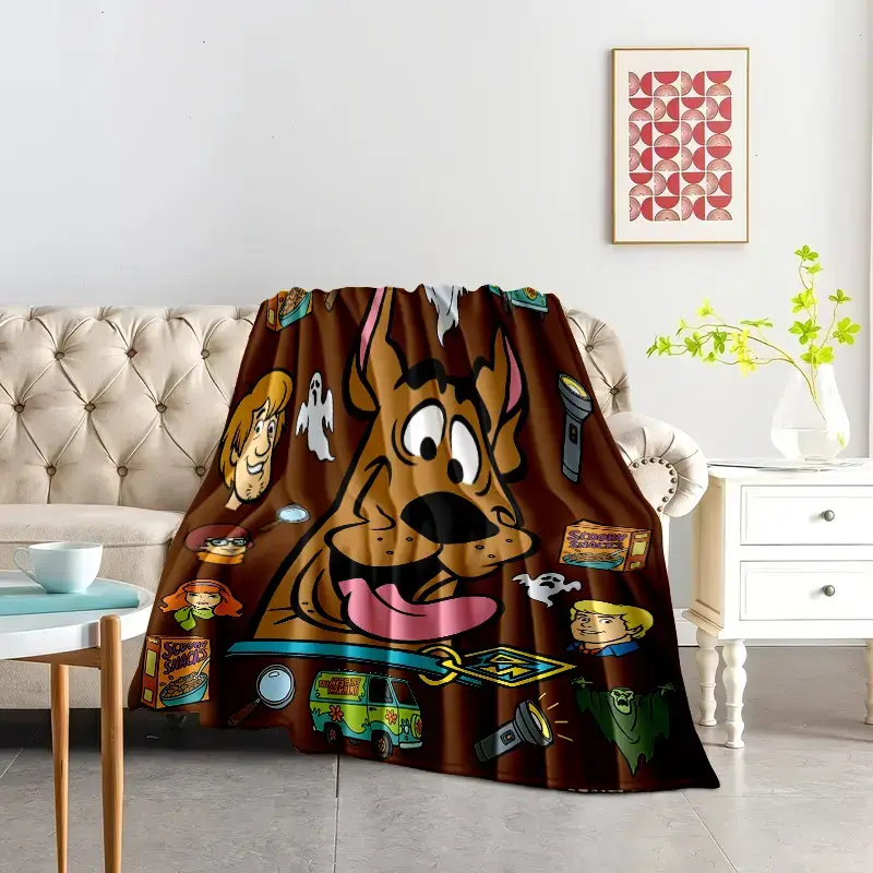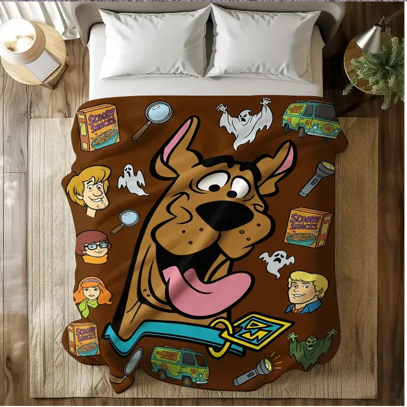 Sale! Scooby-Doo flannel blanket It is made of soft and warm material and can be used as a decorative blanket on the bedside. The pattern includes images of mysterious robots, ghosts, Scooby-Doo and snacks,Suitable for giving to fans, friends and children