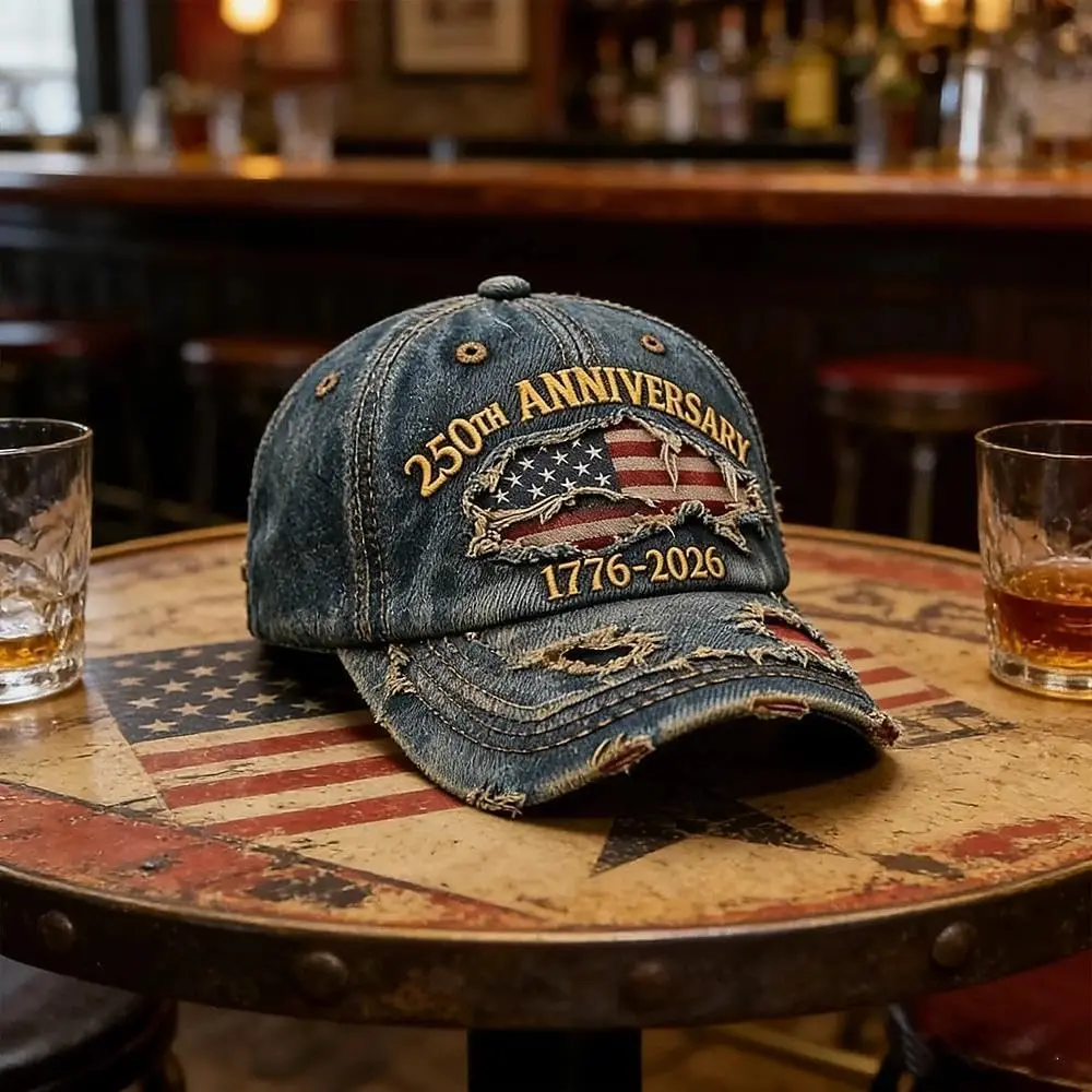 USA 250th Anniversary Distressed Casual Cap,Patriotic Theme 1776-2026 Commemorative Cap,Retro American Tribute Hat Gift Honoring Patriots & Veterans Blue