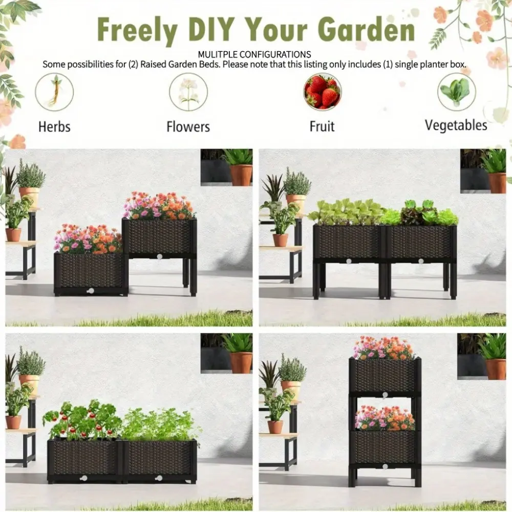 Designed with convenience and efficiency in mind, this raised garden bed features an elevated structure that makes planting, watering, and maintaining your plants easier and more comfortable. The integrated drainage system helps manage excess water, making it suitable for a variety of plants.