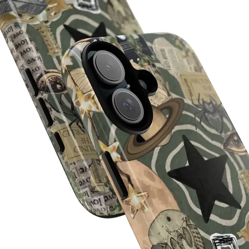 Retro Grunge Aesthetic Tough Phone Case – Music, Space & Newspaper Collage Design, Gift for her for him, Vintage Phonecover, Protective