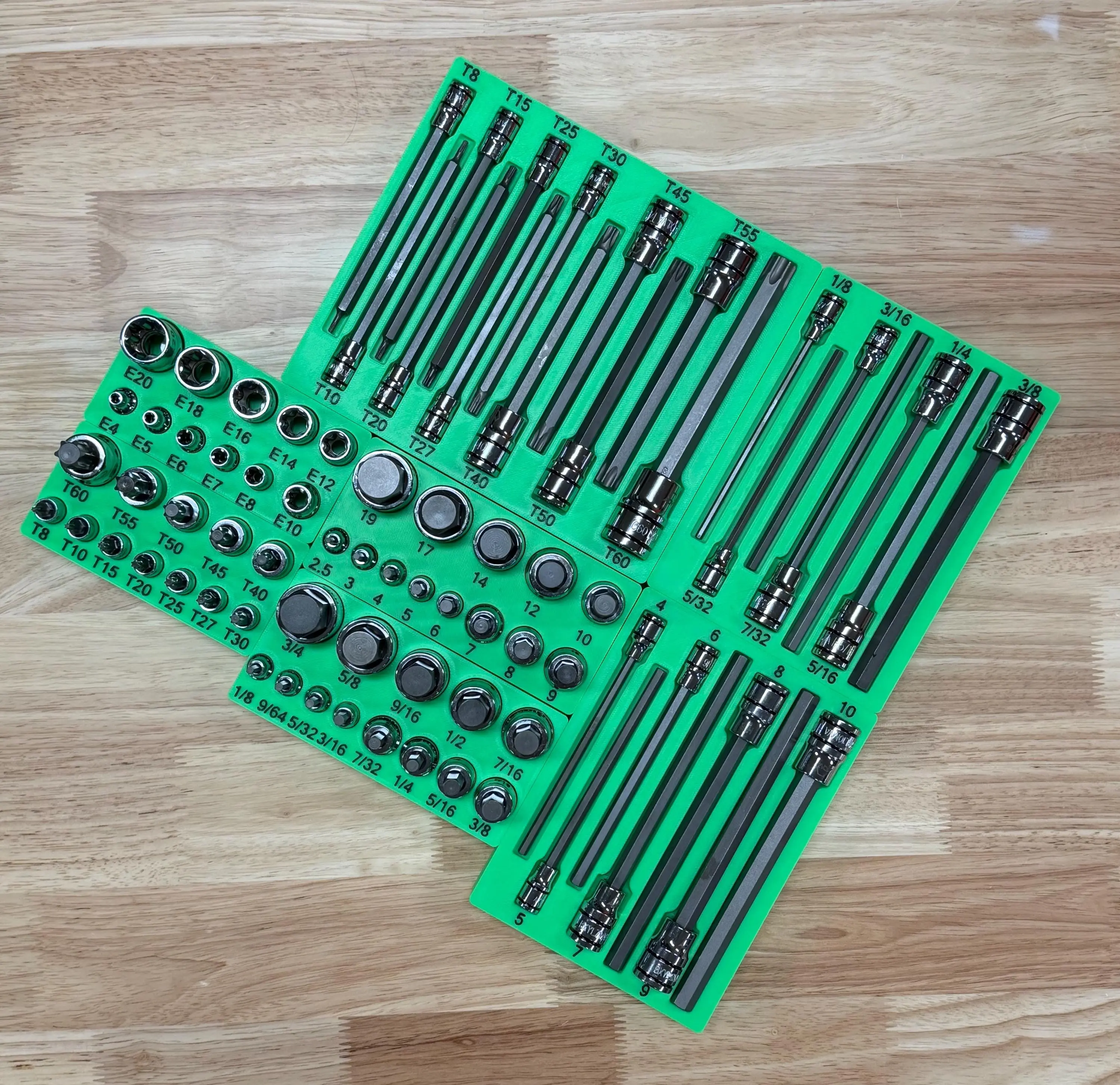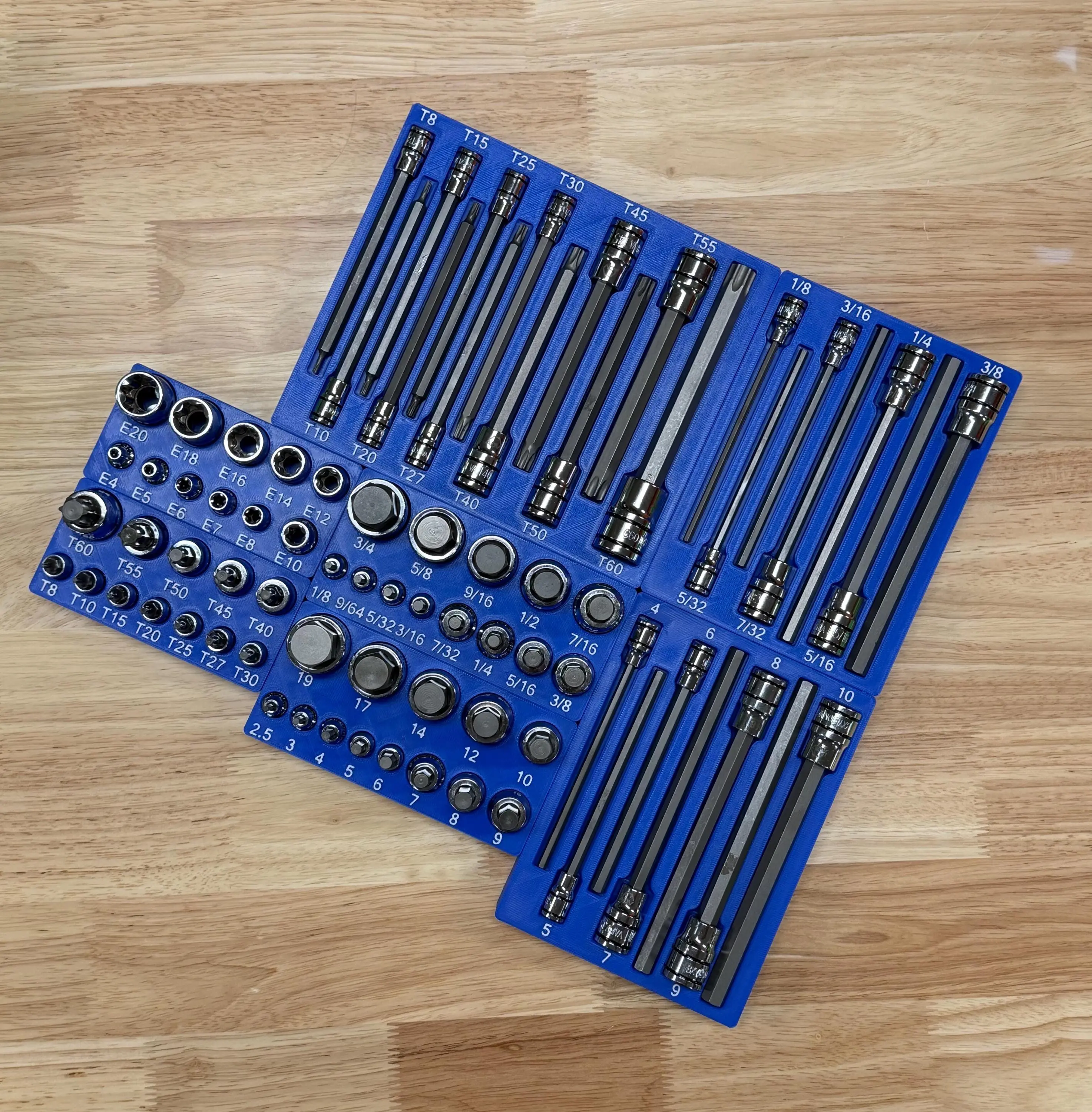 ✔️ Organizes 1/4", 3/8", and 1/2" drive bit sockets — hex, Torx, and inverted star