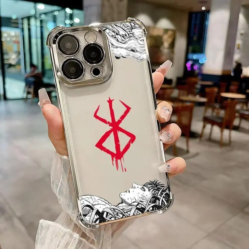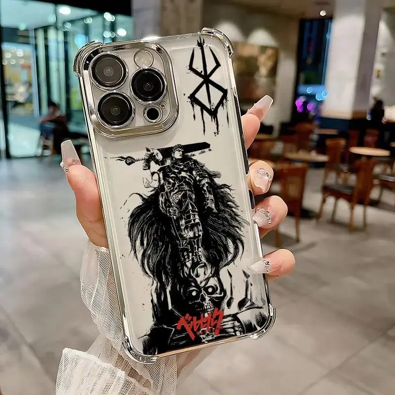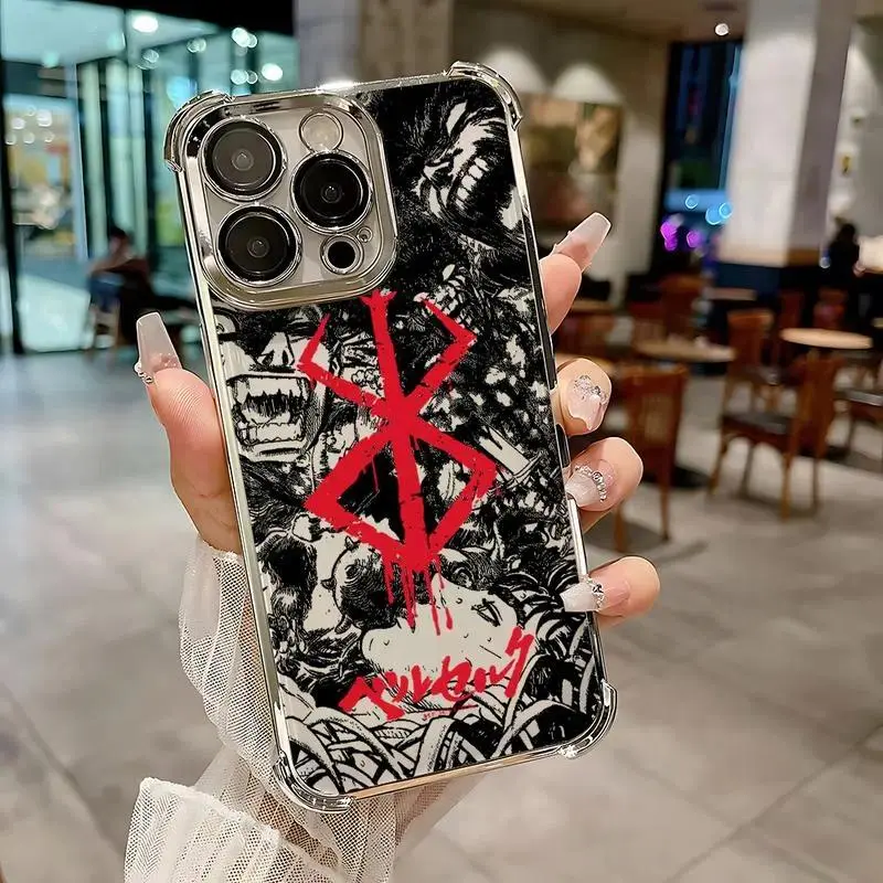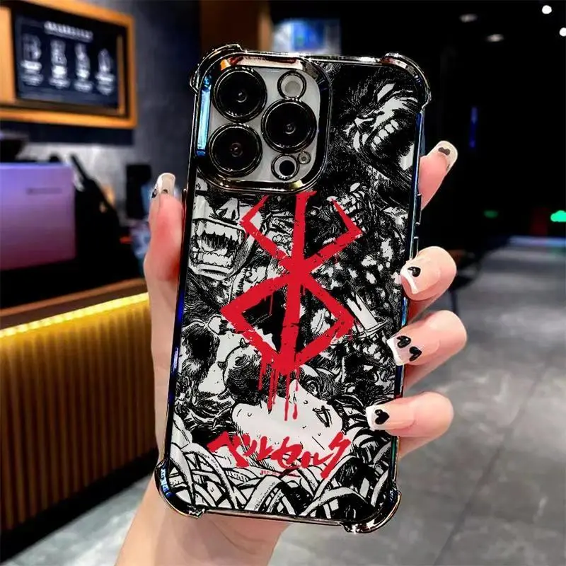 Berserk Comics Hot Anime Plating Phone Case For iPhone 17 Air 16,15,14,13,12,11,Pro,MAX Plus Anti-Fall Cover