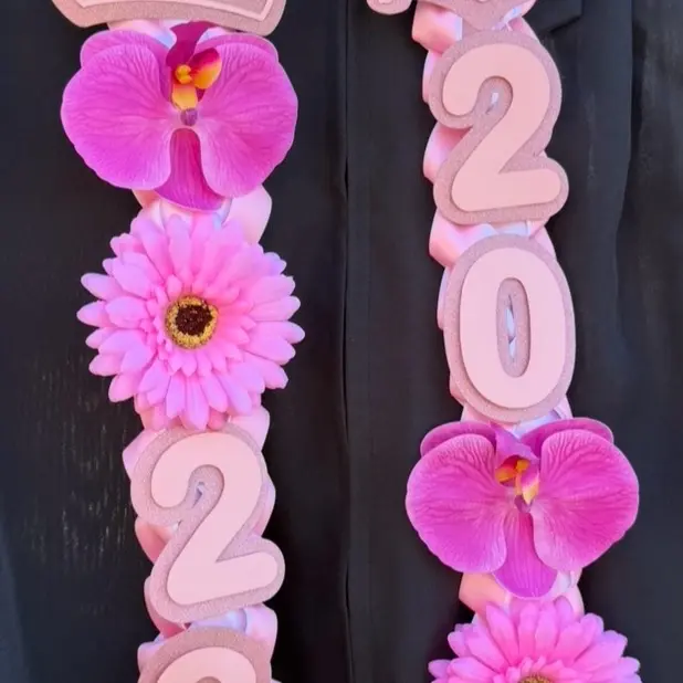 Gorgeous pink graduation lei Decorated with ribbon flowers