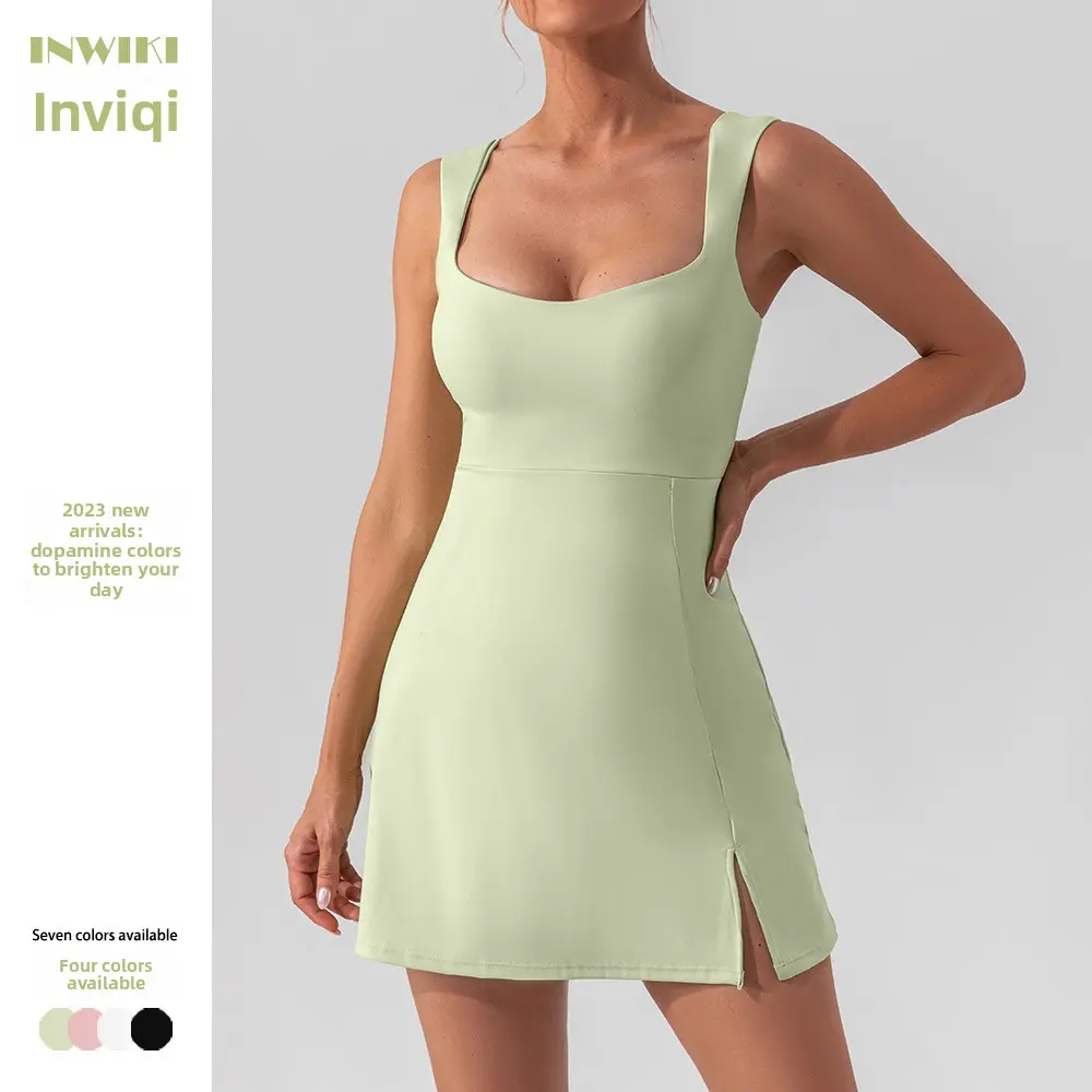 , designed for the modern woman who demands style, comfort, and performance on and off the court.This sleek athletic dress combines a flattering square neck, sleeveless cami design, and a built-in high-waisted shorts liner to create a streamlined, supportive fit perfect for all your favorite activities.
