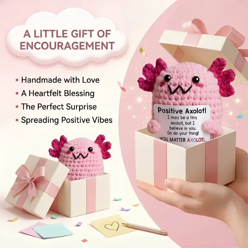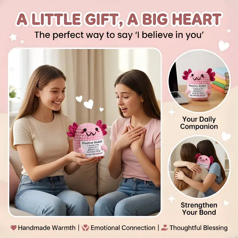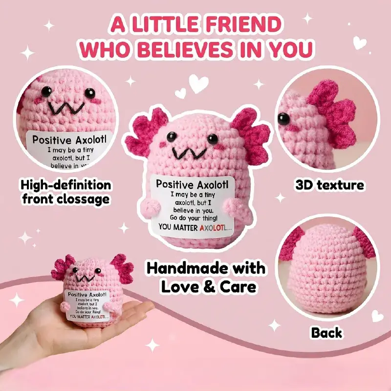 Handmade Crochet Animals with Positive Encouragement Messages, Cute Emotional Support Plush Companions, Soft Mood-Lifting Stuffed Toys for Tough Days, Sweet Loving Gifts for Loved Ones, Heartwarming Encouragement Presents