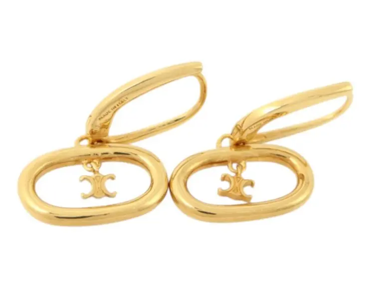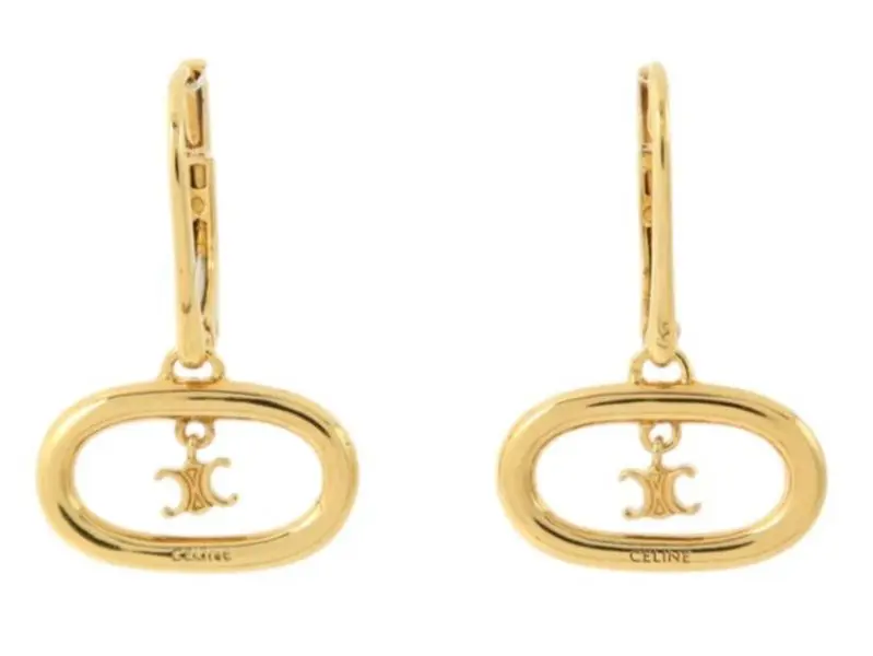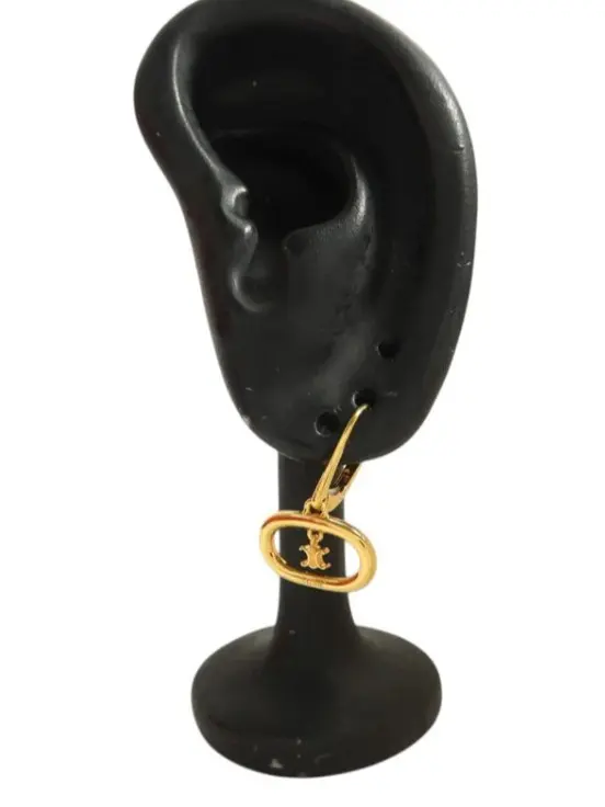 Pre-owned CELINE Triomphe Mobile Earrings in gold brass, showcasing the iconic Triomphe design. These earrings are in good condition with minor scratches, dirt, or signs of use consistent with pre-owned luxury jewelry. Dimensions: 25mm length × 15mm width. A timeless piece from CELINE's collection, perfect for adding understated elegance to any look. Ideal for collectors seeking authentic luxury at a more accessible price point.