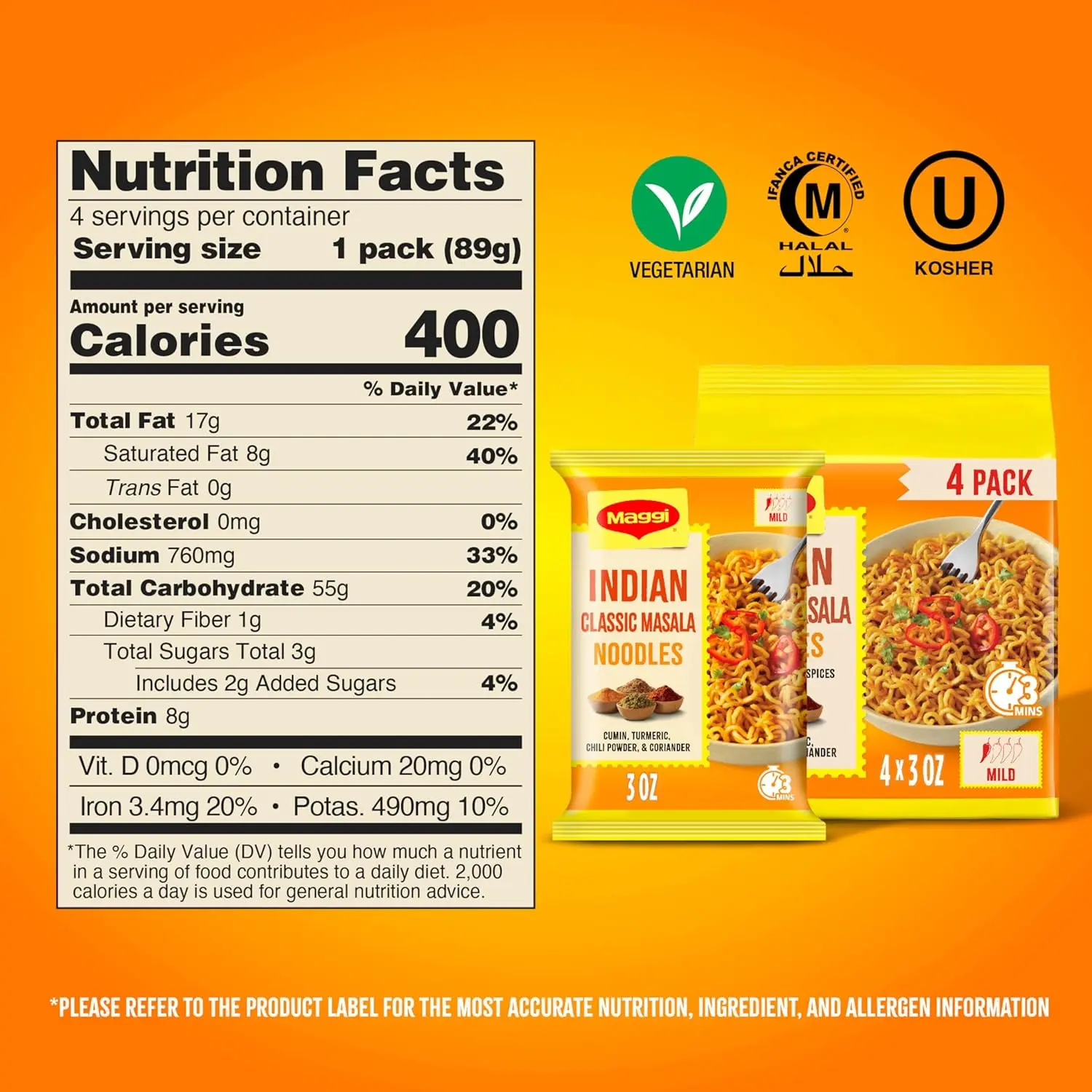 ·FLAVORS FOR ALL DIETS These Maggi noodles are vegetarian, kosher and halal. Making them a good choice for a variety of dietary preferences