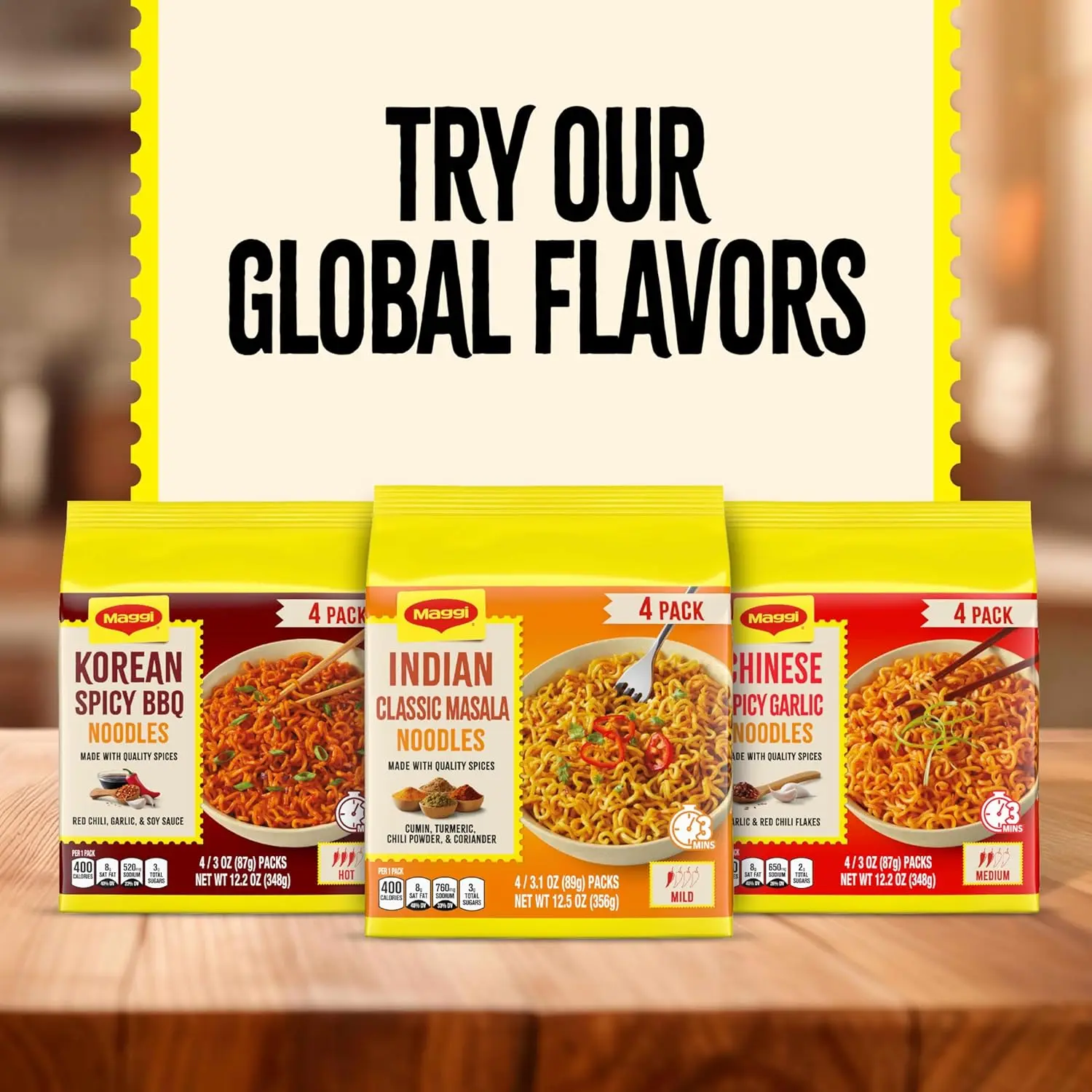·MILD SPICE, MAX FLAVOR Enjoy a mild spice that gives your Maggi noodles just the right amount of kick. These Indian masala noodles deliver bold, savory flavor, without an overwhelming heat