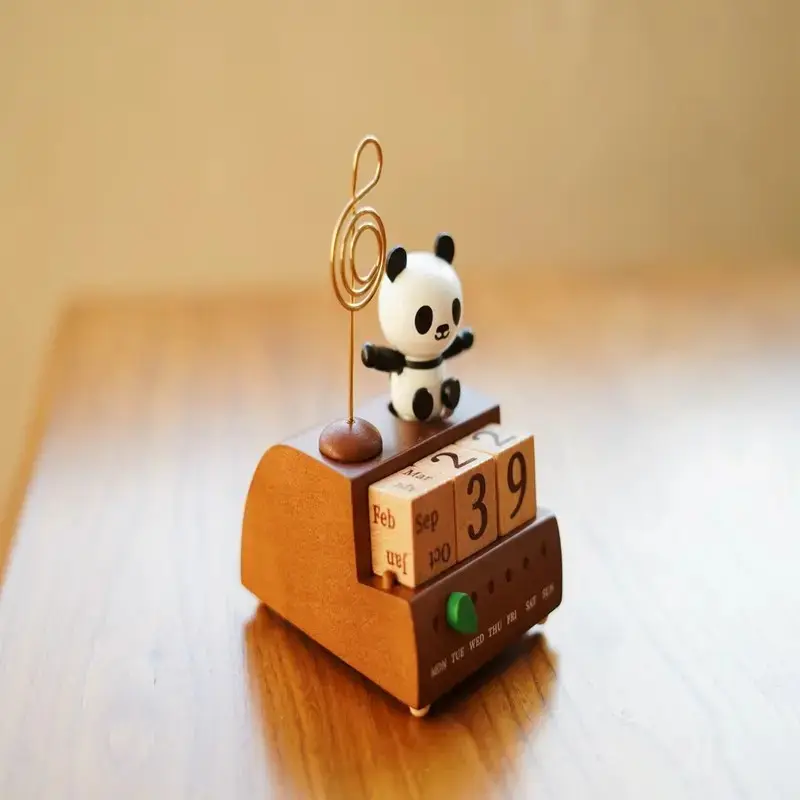 Wooden Panda Calendar Music Box, Desktop Bedroom Ornaments, Unique Decorative Gift, Perfect for Home & Office Decoration