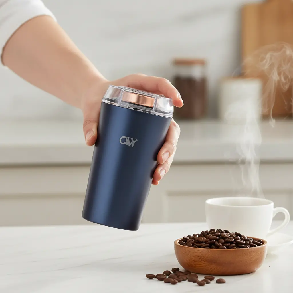 Meet your new kitchen essential. This compact 100W electric grinder delivers fast, consistent grinding for coffee beans, spices, nuts, herbs, and more. Built with durable 210 stainless steel, it’s designed for everyday use without taking up counter space.