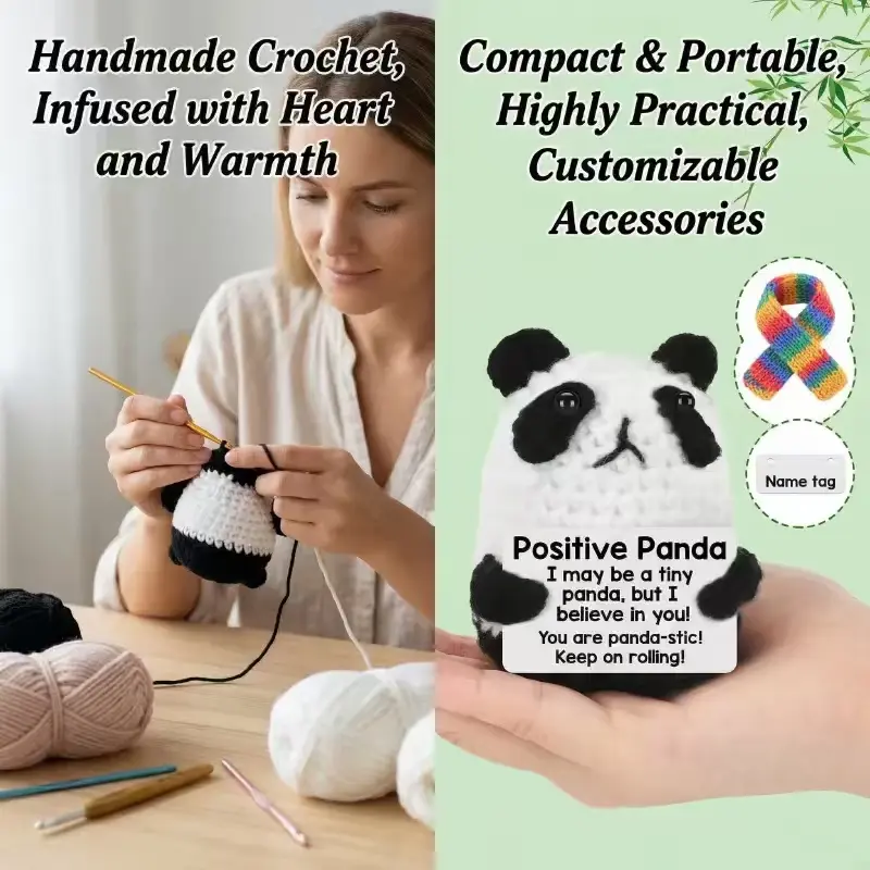 Handmade Crochet Panda Emotional Support Plush, Soft Mini Stuffed Animal, Cute Stress Relief Toy, Portable Desk & Home Decor Companion, Ideal Gifts for Women Men Teacher, Birthday & Teacher Appreciation Presents, Easter Basket Stuffers & Egg Fillers