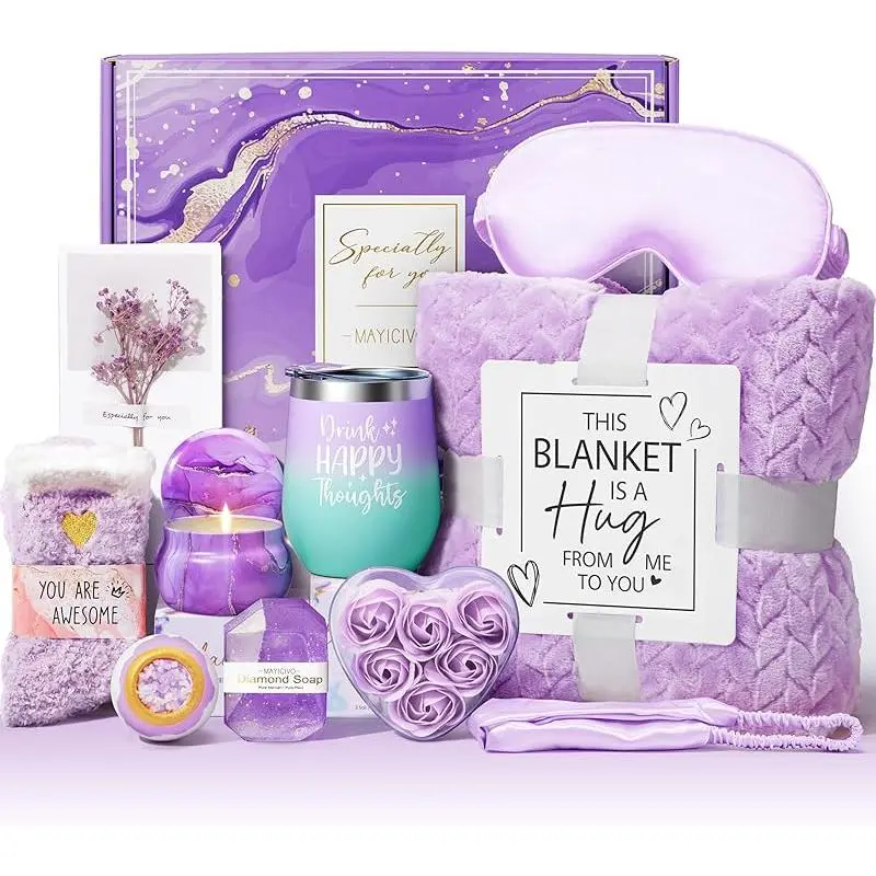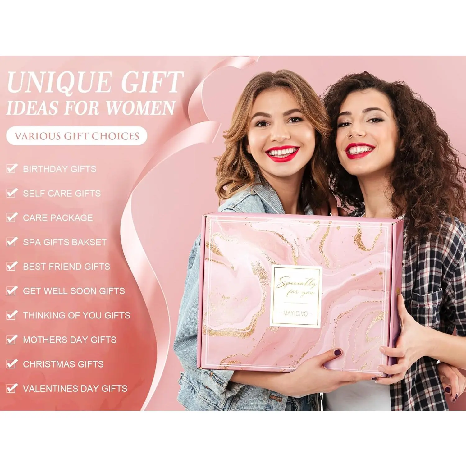 Own one MAYICIVO Luxury Gift Baskets for Women Birthday Gifts Mothers Day Christmas Gifts Set as a sweet & warm gift for your special lady to surround her with your love and care, brings her happy mood and relaxing experience! Show her how much you care and appreciate her with this thoughtful and luxurious gift.