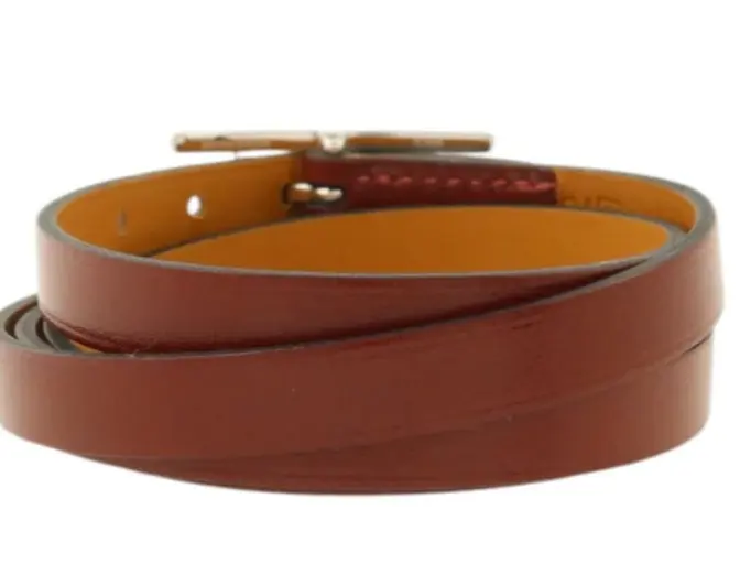 Pre-owned HERMES BoxLeather Hapi 3 BraceletGinpaku Teba Rouge H BraceletRouge H Rouge H Red Rouge H Box calf leather Calfskin (cowhide)