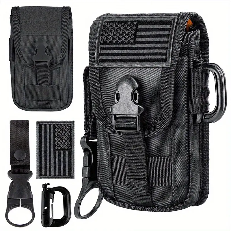 Multi functional Molle Waist Bag with US Flag Patch Adjustable Phone Pouch for Hiking Running Cycling Tactical Accessories