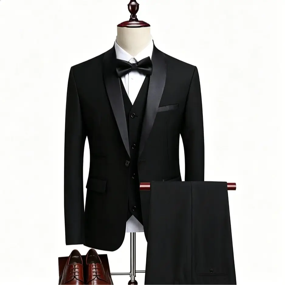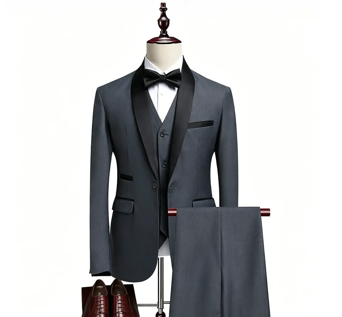 ·Satin Shawl Lapels: Luxurious black satin shawl lapels add a glamorous, formal touch, elevating the suit from standard business wear to standout wedding attire.