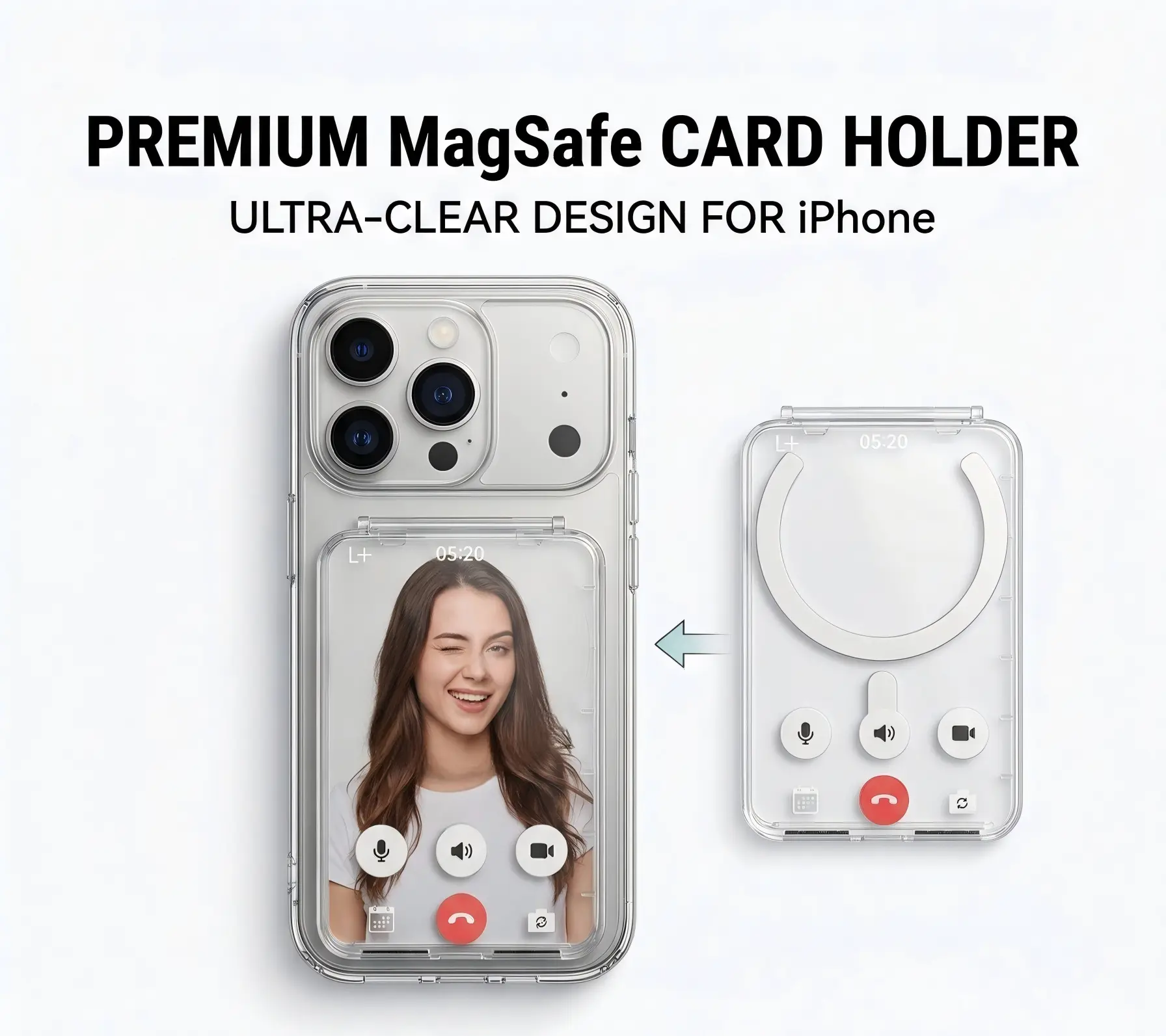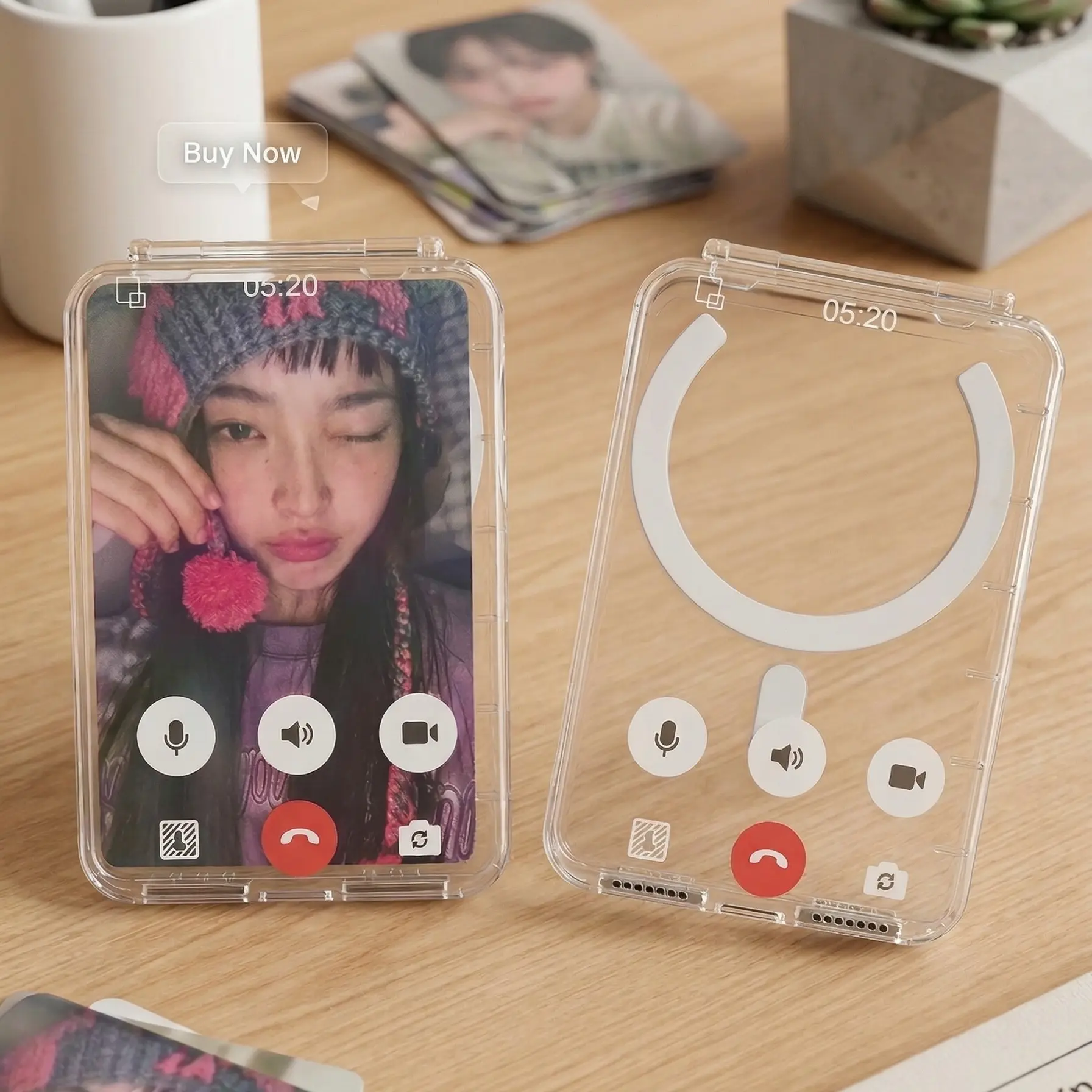 Must-have for K-pop stans! Transparent Magnetic Flip Card Holder - FitsCredit Card /ID / K-pop Photocard Size(95 x 63 mm, Not for Trading Cards) -Compatible with iPhone and SamsungGalaxy S25/ S24 Series