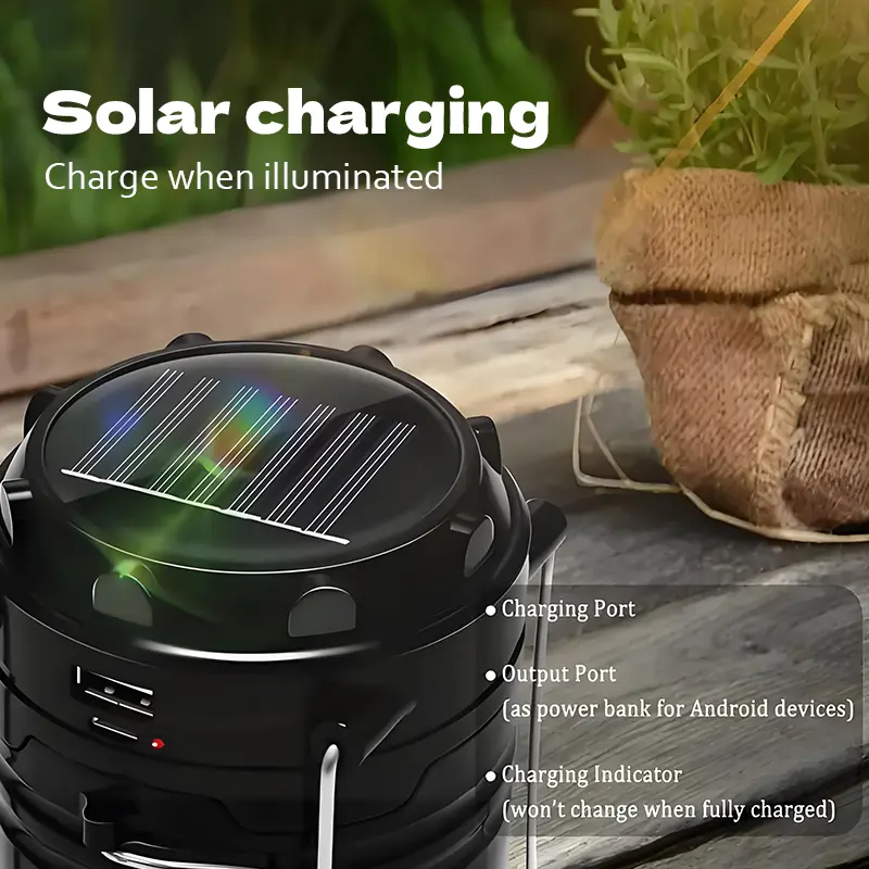 ·[Two Charging Methods]Built-in 1600mAh Li-ion rechargeable battery, the upgrade led lantern with two charging methods: Solar charging and USB Charging. Automatic power-off protection, Don't worry about overcharging. The lantern with USB output port can be used as a power bank for Android in emergency.