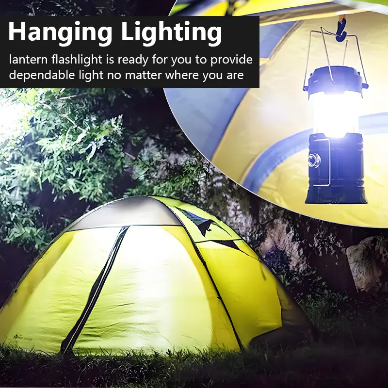 ·[360° Lighting Coverage]Adopts 6+1 high-intensity LED chips, energy efficient/with wide range of visibility.Doubles as both a lantern & as a flashlight, adjust the brightness by how high up you pull up the lantern, providing tons of light at full open, easily light up an entire room.