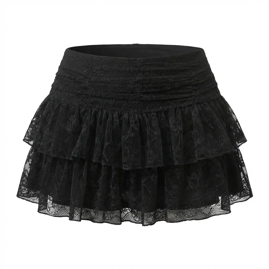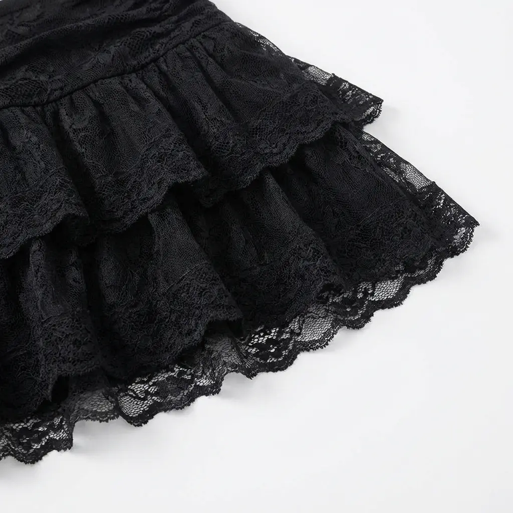 Elevate your wardrobe with this stylish Black Lace Tiered Ruffle Mini Skirt. Crafted from a blend of 95% Polyester and 5% Spandex, it offers both comfort and flexibility. Perfect for adding a touch of elegance to any outfit. The tiered ruffle design adds a playful yet sophisticated element to your look.