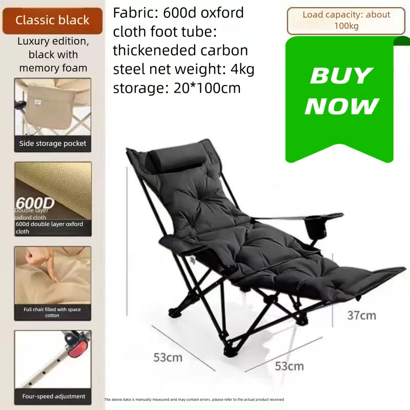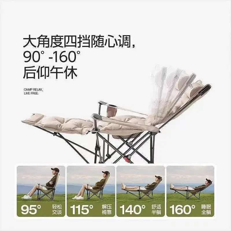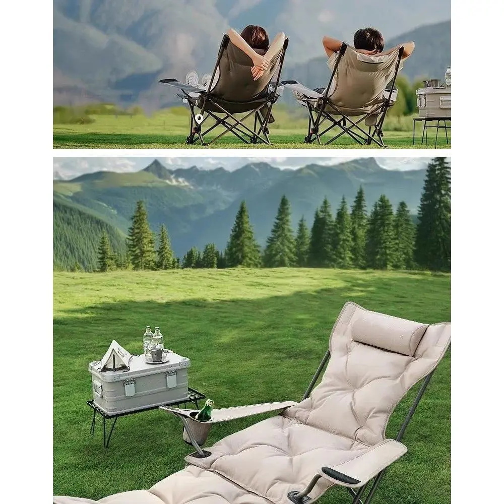Foldable 4-Position Adjustable Lounge Chair with Armrests Thickened for Outdoor Indoor Use Portable Recliner for Camping Office Resting