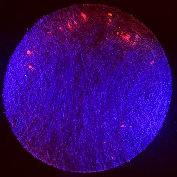 3. Shine the blue light — microplastics glow pink