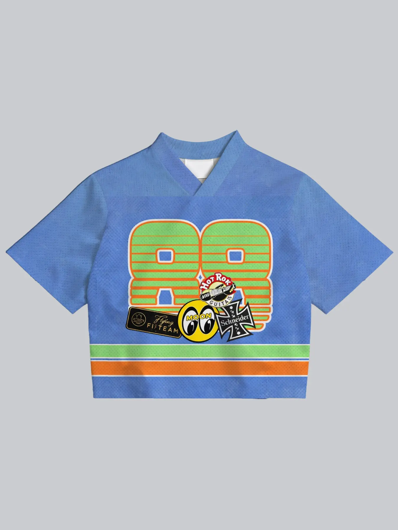 5. Vintage 90s Racing Style Women's Short Sleeve Jersey, Sky Blue V-Neck Mesh Top, 88 Number Print, Loose-Fit Sporty Streetwear T-Shirt