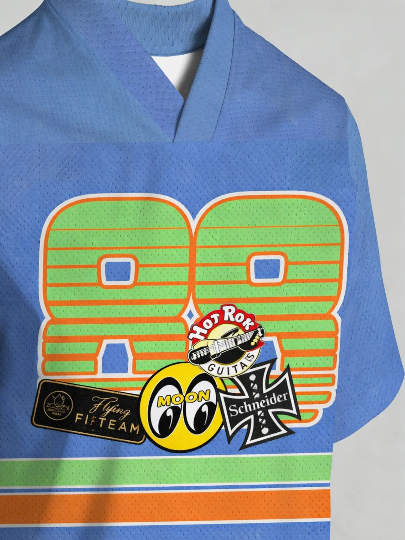 Vintage 90s Racing Style Women's Short Sleeve Jersey, Sky Blue V-Neck Mesh Top, 88 Number Print, Loose-Fit Sporty Streetwear T-Shirt