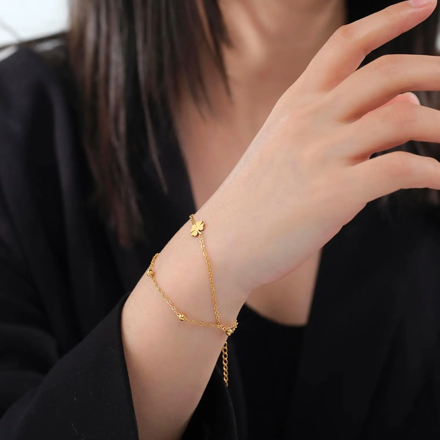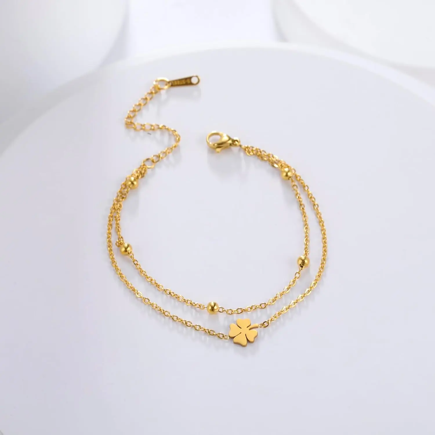 VASSAGO Four Leaf Clover Bracelet Stainless Steel Lucky Four-Leaf Clover Bracelet for Women Fashion Jewelry Gifts for Women