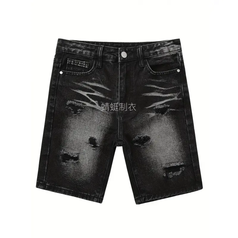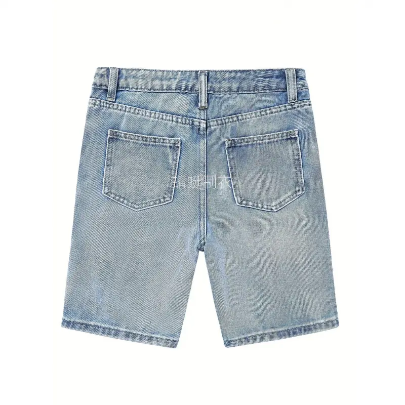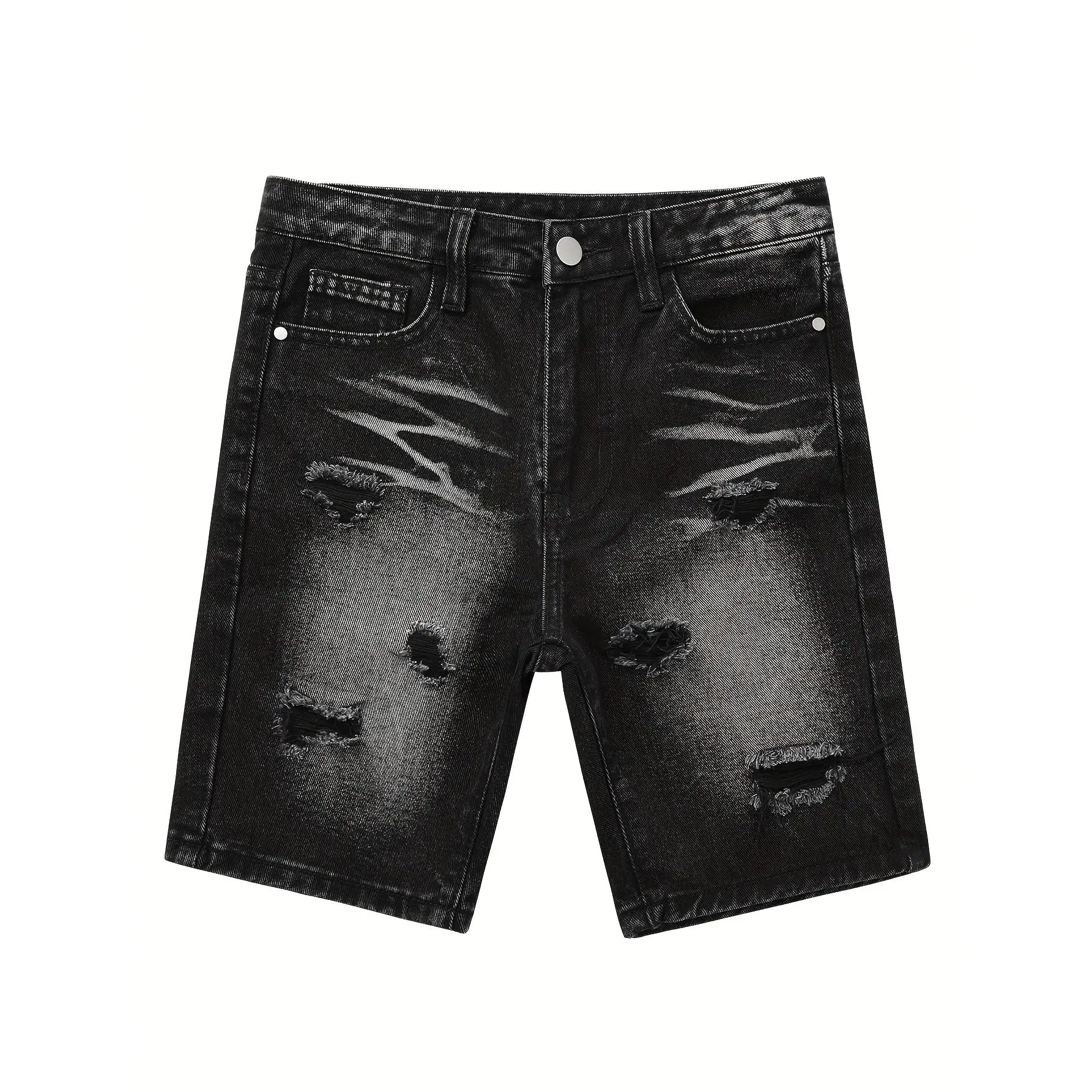 NewNewLittle Big Boys Ripped Denim Shorts Distressed Frayed Jean Shorts Comfortable Distressed Frayed Jean Shorts With Pocket, Street Style, Machine Washable, Spring Summer Clothing, Casual Jeans, Durable Pants